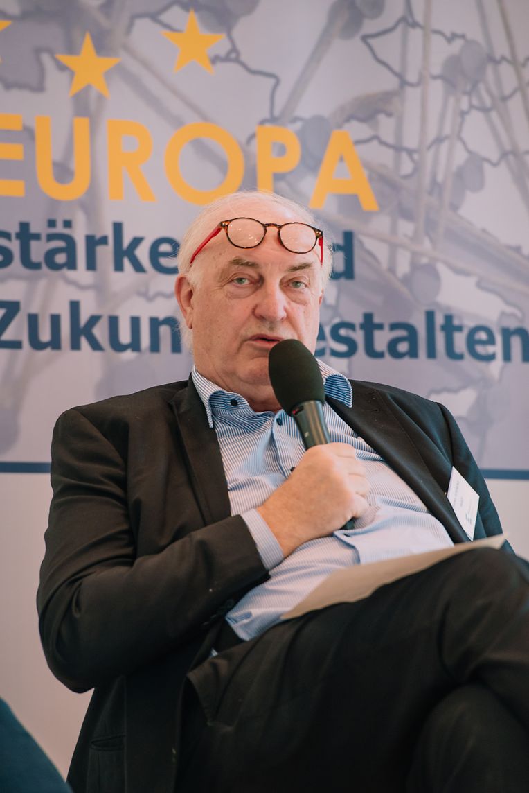 Daran schloss sich dann eine Paneldiskussion an, die von Prof. Dr. Anna-Lena Högenauer (Universität Luxemburg) moderiert wurde mit den Panelisten Sarah Reisinger (Junge Europäer - JEF Baden-Württemberg e.V.), Karl-Heinz Lambertz (Ministerpräsident a.D. und ehemaliger Vorsitzender des Europäischen Ausschusses der Regionen) und Stefan Kohler (Gründer und Vorsitzender der EUL).
