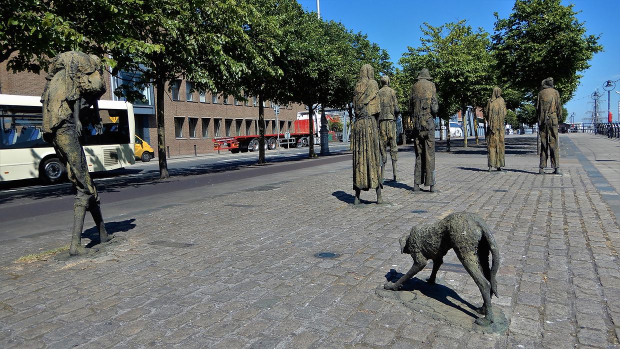 An den Joren 1845 bis 1852 waren an Irland méi wéi 1 Millioun Mënschen duerch Honger gestuerwen. Zu Dublin, no beim Hafen wuer vill Irlänner hier Heemecht verloss haten fir hiert Gleck an Amerika ze sichen, goufen ganz impressionant Statuen opgericht.