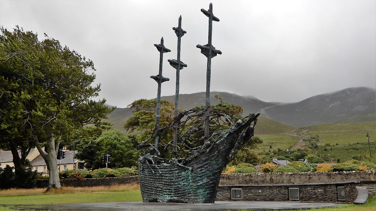 En weidert Monument, dat National Famine Monument, steht zu Murrisk am County Mayo.