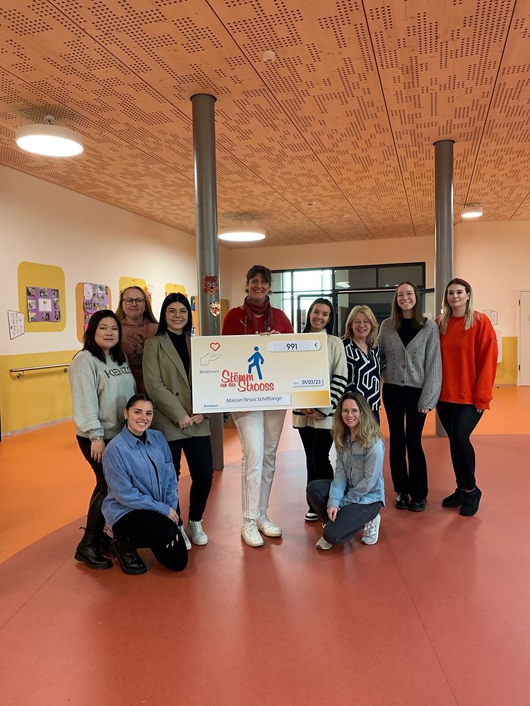 Le 1er mars 2023, Alexandra Oxacelay, directrice de la Stëmm vun der Strooss, a été invitée par le personnel éducateur de la Maison Relais Schifflange, pour réceptionner un don de 991 €.