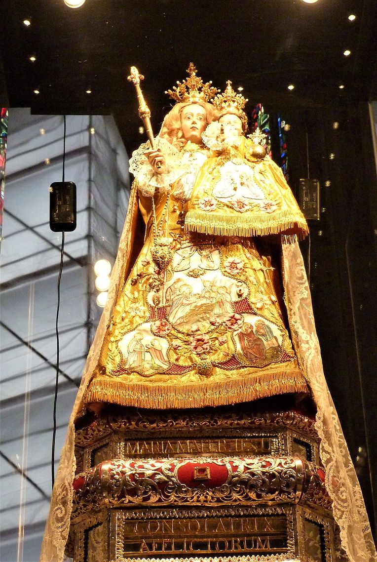 Dësen Marienstatuen sin ech zu: Lourdes, Lëtzebuerg, Gronn, Marmors Gap, Morlaix, Neufchâteau, Neuvy-St.-Sépulcre, Nevers, Notre-Dame-des-Anges, Orval, Pont-Croix, Quinta da Avaleda, Rennes-le-Château, Rocamadour, Ruedt-Syr, Roquefort, Saigon/Ho Chi Min Stadt, Saint-Révérien, Sé, Senj, St. Jean-Pied-de-Port, St. Pierre-de-la-Chartreuse, St. Omer, Swieta Lipka/Heilige Linde, Thiersee an an den Pyrenäen begeent.