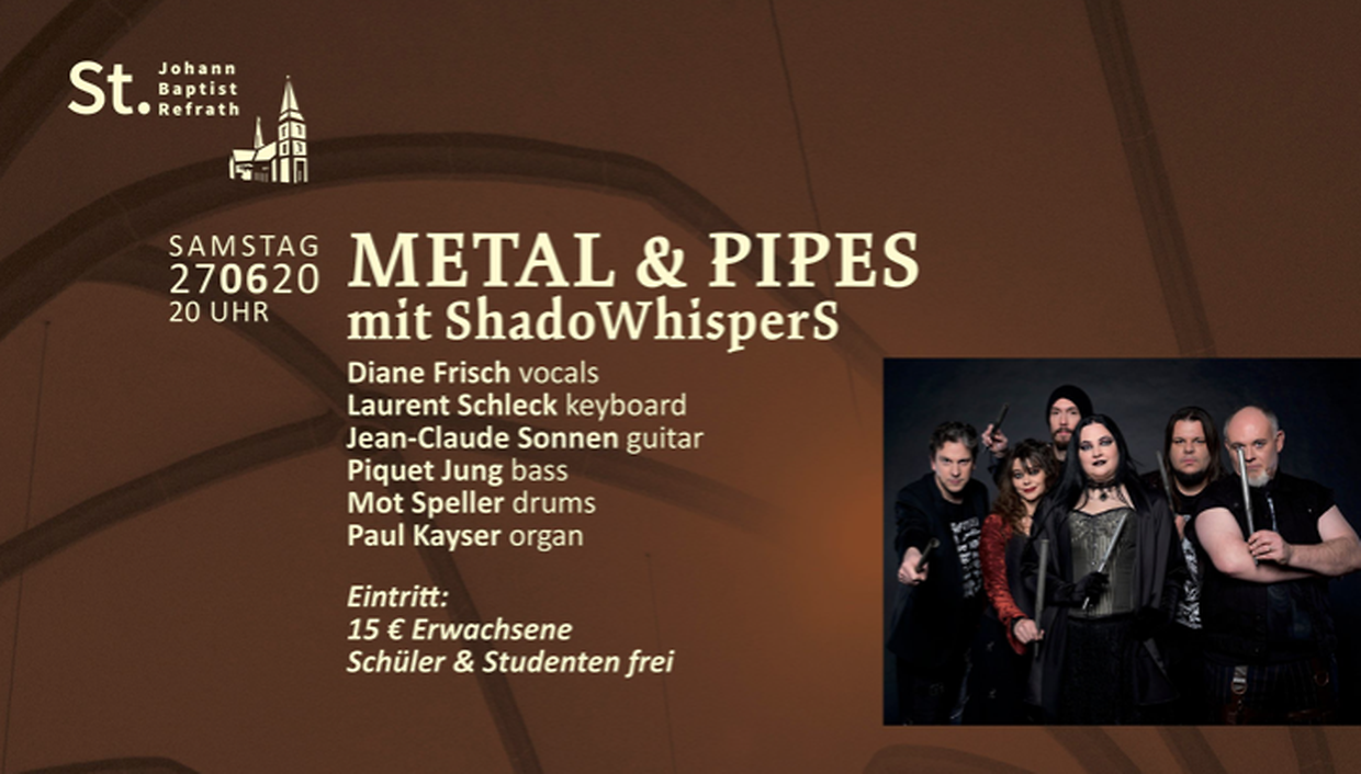 Umso mehr freuen sich die Musiker des Projekts "Metal & Pipes", das sich aus der symphonic Metal Band ShadoWhisperS und dem Organisten Paul Kayser zusammensetzt, auf ihr erstes live Konzert mit Publikum nach dem Lockdown.