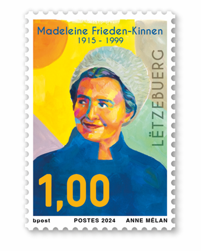 Gedenktag für Madeleine Frieden-Kinnen. Sie war (4. Oktober 1915 in Esch/Alzette) die erste Ministerin in einer luxemburgischen Regierung. Nach ihrer Schulzeit in EttelbrÜck und Luxemburg-Stadt studierte sie in Dijon, Paris, München und Löwen Literaturwissenschaften. 1946 heiratete sie den damaligen Direktor der Nationalbibliothek, Pierre Frieden, der in den Jahren 1945 bis 1959 für die Chrëschtlech-Sozial Vollekspartei (CSV). Christlich-Soziale Volkspartei) zunächst Unterrichtsminister und danach luxemburgischer Ministerpräsident war. Während der politischen Karriere ihres Mannes engagierte Frieden-Kinnen sich in katholisch. Christlichen Vereinen wie z.B. der „Katholischen Aktion der Frauen Luxemburgs“, deren Präsidentin sie von 1960 bis 1966 war. Nach dem Tod von Madeleine Frieden-Kinnen am 8. Februar 1999 wurde im luxemburgischen Parlament eine von ihr verfasste Erklärung verlesen, in der sie ein weiteres Mal die 1972 gegen sie erhobenen Vorwürfe kategorisch zurückwies. Nennwert: 1,00 Euro. Layout: Anne Mélan (L). Druck: Bpost Stamps Factory, Malines (BE).