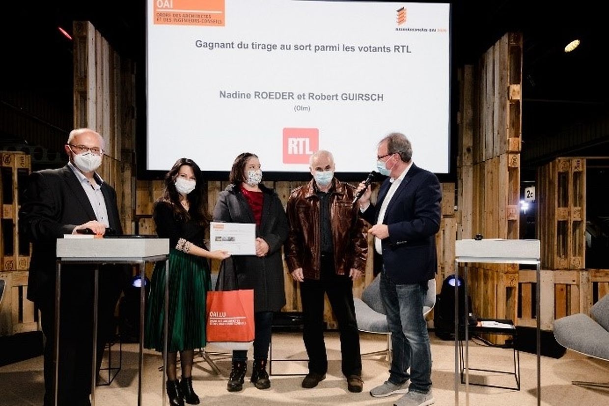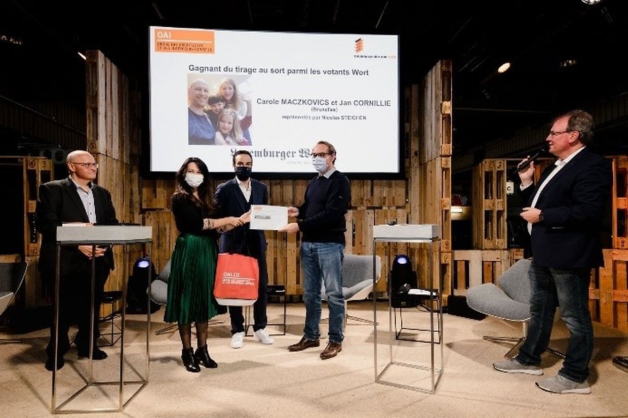 En présence du modérateur Camille NEY (RTL), de Julien LESPAGNE (Wort), du directeur de l’OAI Pierre HURT, chaque couple a reçu le 18 octobre 2020 des mains de la députée Semiray AHMEDOVA, Co-présidente du jury du Bauhärepräis OAI 2020 sur le podium central du salon home Expo / Semaine Nationale du Logement 2020 leur cadeau, à savoir un 1 week-end pour 2 personnes « A la découverte architecturale et culturelle de la Ville de Luxembourg ».