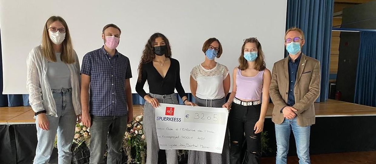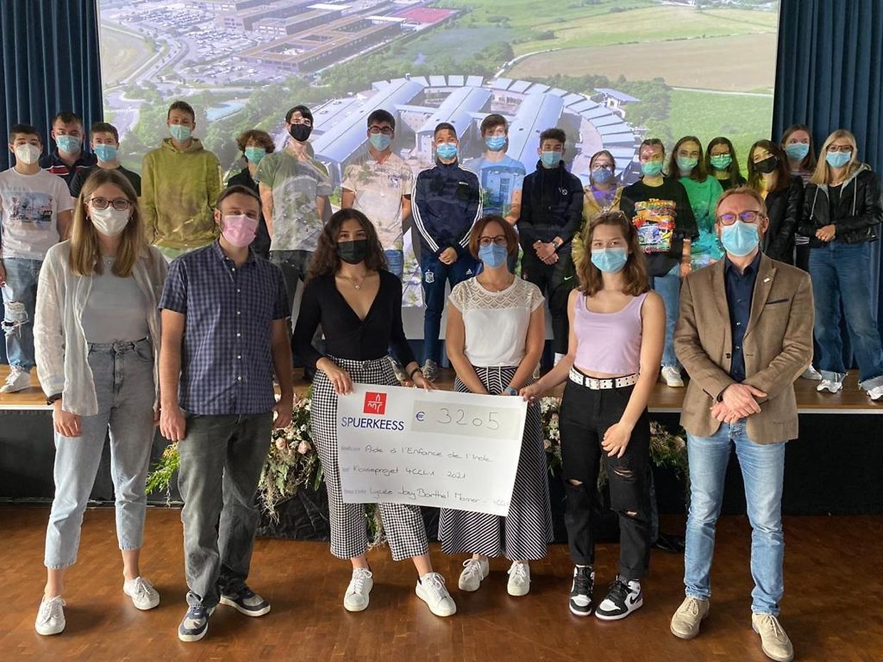 AEIN seet de Schüler aus der 4ième C1 an der ganzer Schoulcommunautéit vum Lycée Josy Barthel e ganz grousse MERCI fir hiren Asaz an hiren generéisen Don fir déi vulnerabel Leit an Indien!