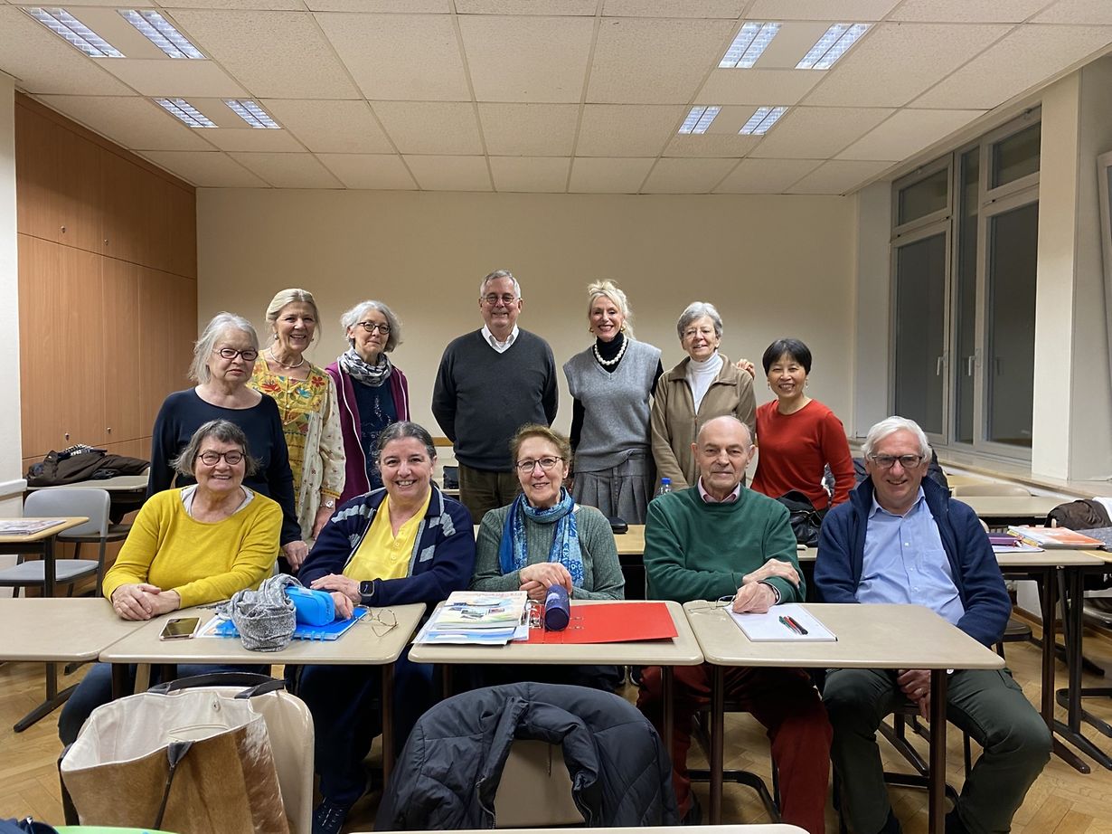 La photo montre les participants au cours de chinois, niveau avancé, avec Mme Li-Chuan LIN, sinologue-professeur diplômée de l'Université Nationale Normale de Taipeh (Taiwan).