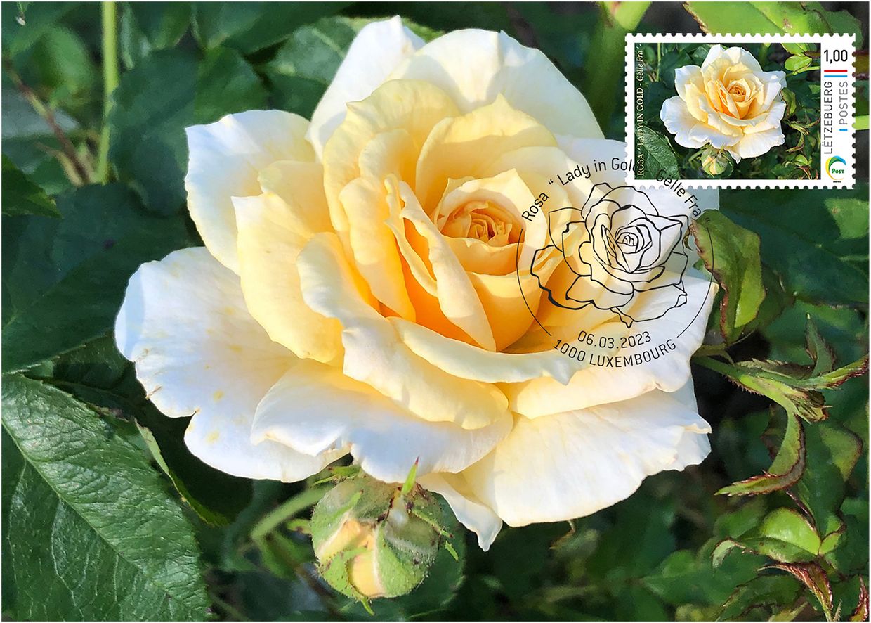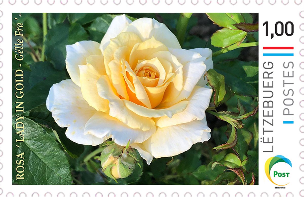 En l'honneur de la rose ’Lady in Gold, syn. Gëlle Fra’ un timbre-poste meng.post spécial a été émis par POST Philately et l'asbl Patrimoine Roses pour le Luxembourg. Ce timbre a été remis le lundi 6 mars 2023 en tant que cadre souvenir en présence de Pierre Zimmer, Directeur général adjoint de POST Luxembourg et de membres du Conseil d'administration de l'asbl lors d'une cérémonie officielle au parrain et à la marraine de la rose: Xavier Bettel, Premier Ministre et Lydie Polfer, Bourgmestre de la Ville de Luxembourg.