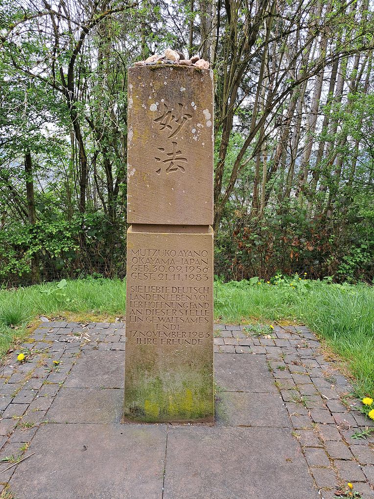 Unweit des einst beliebten Ausflugslokals geschah im Jahr 1983 eine Bluttat, an das heute ein Monument mit japanischer Schrift erinnert. An einem Novembertag 1983 wurde eine 27-jährige japanische Studentin der Universität Trier bei ihrem Nachhauseweg von einem Mann überfallen und brutal zusammengeschlagen: Die Eltern von Mutsuko Ayano erwiderten den grausamen Tod ihrer Tochter mit der Gründung einer Stiftung, die es japanischen Studierenden erlaubt, einen Aufenthalt an der Universität Trier zu absolvieren. Was für eine "tolle" Art zu Trauern: In ihre Leidensschmerzen implementieren sie ein Stück Zukunft! So steht Mutsuko Ayanos Martyrium an der Wiege des Fachs Japanologie an der Universität Trier.
