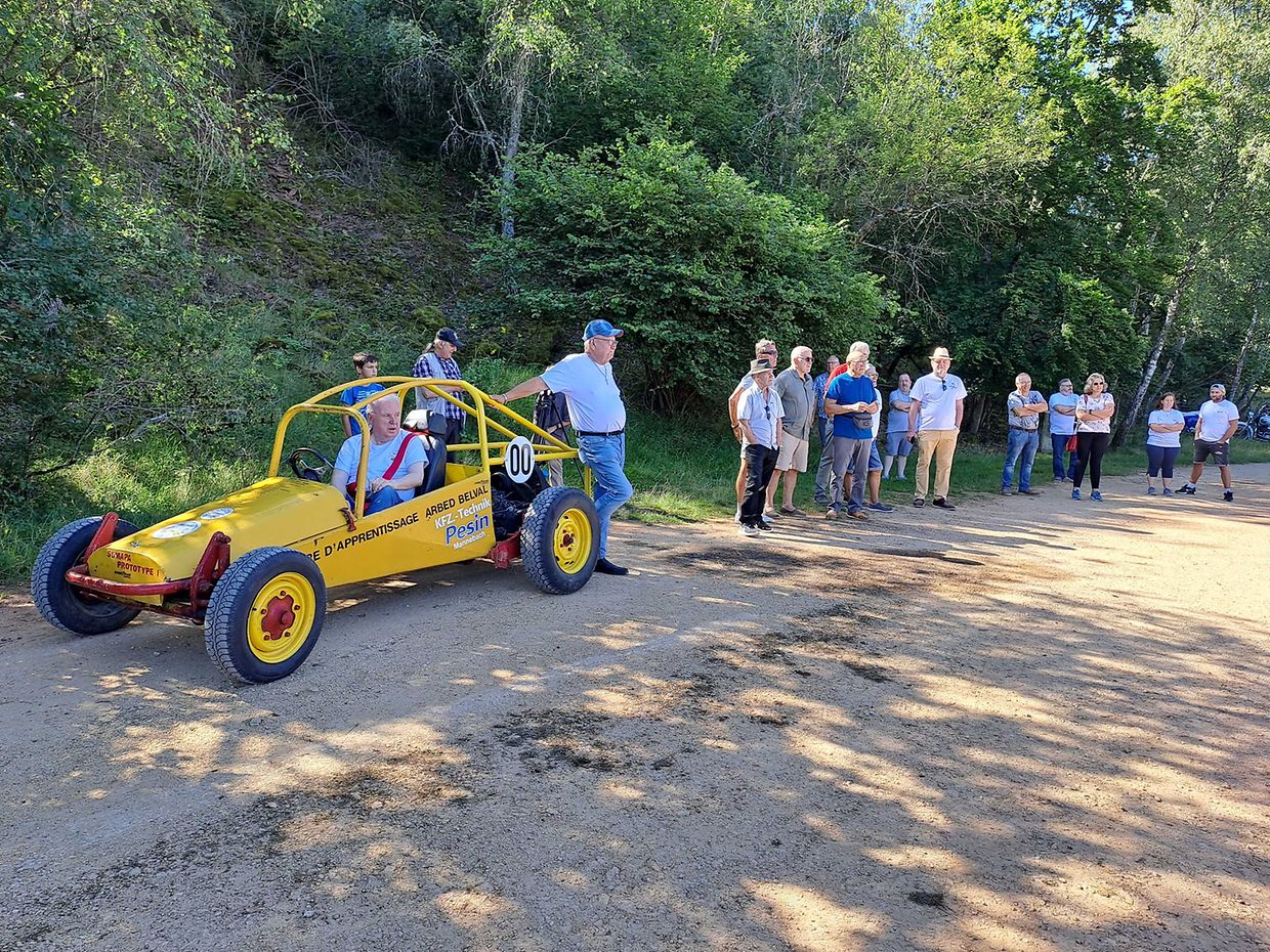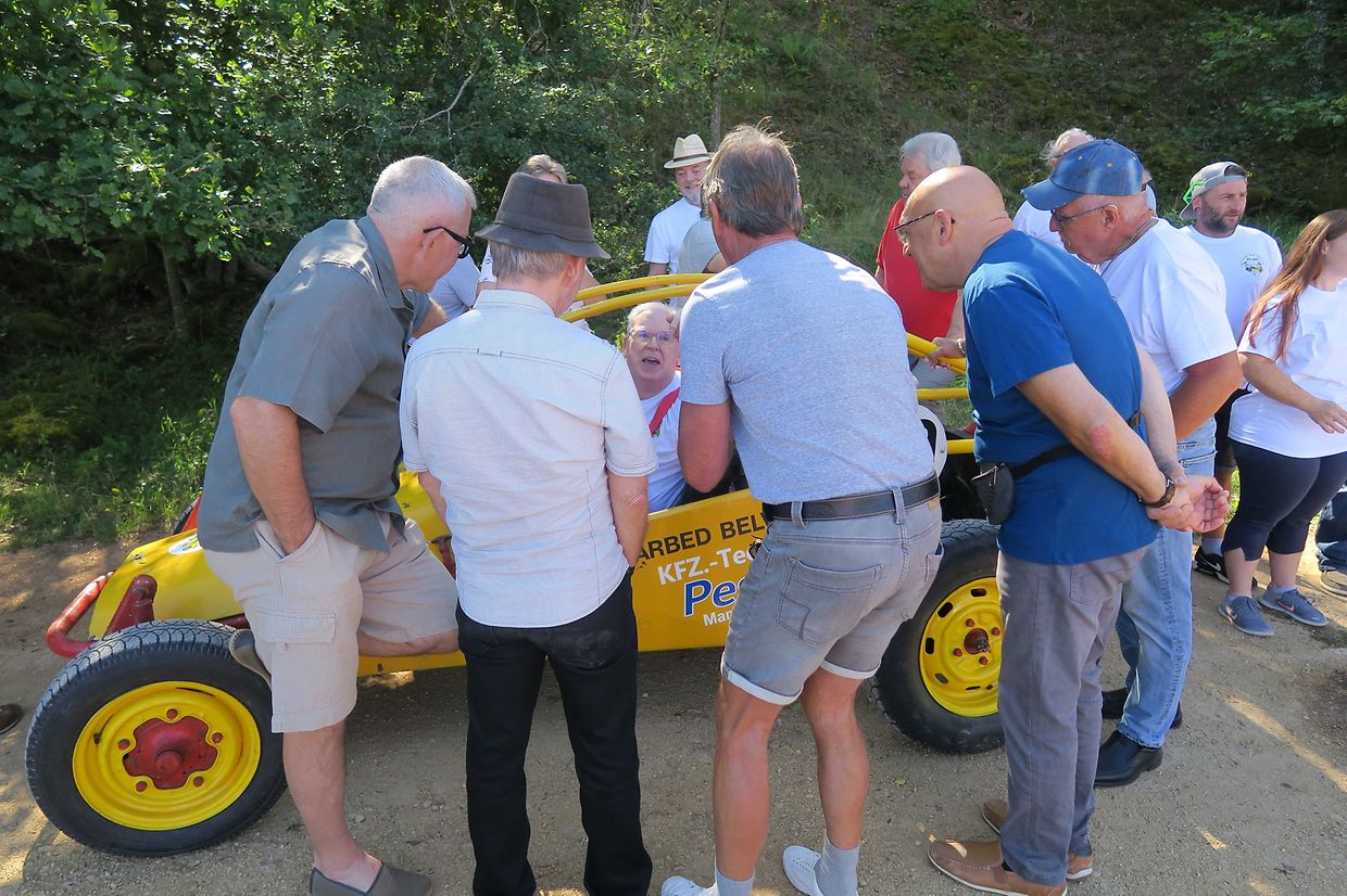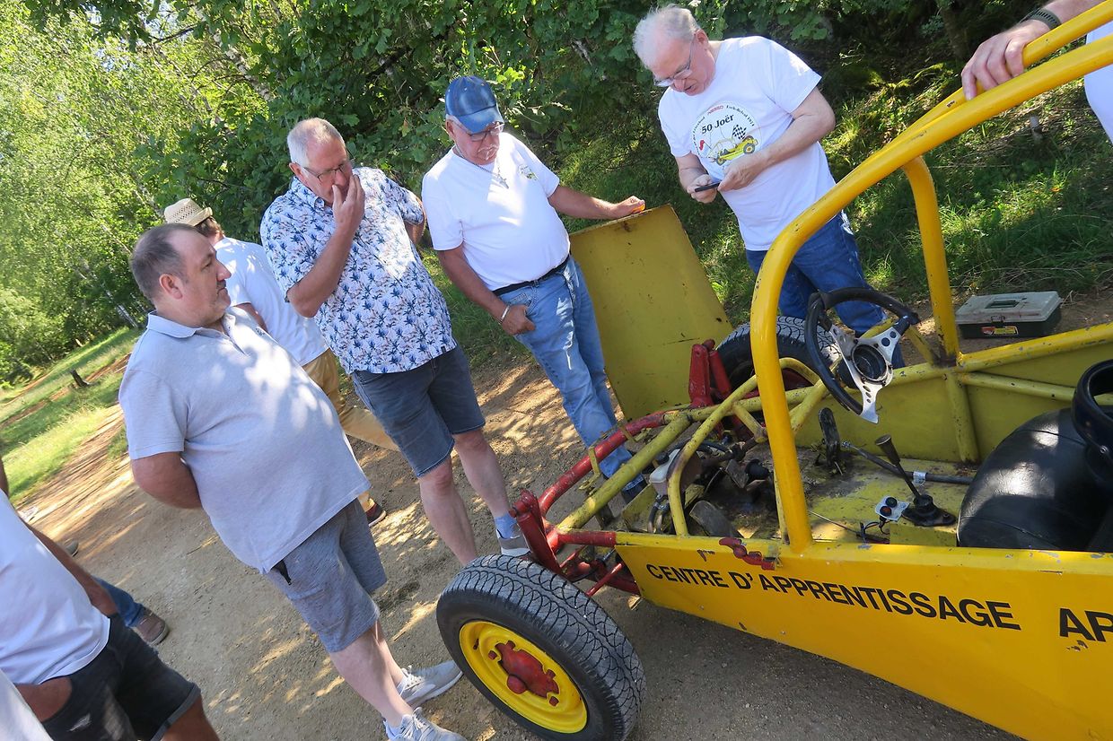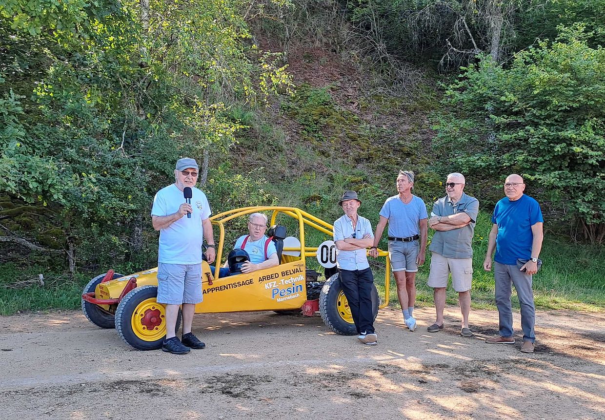 Zur von Willy Andres und seinem informellen Team initiierten Jubiläums-Zusammenkunft hatten sich einige ehemalige Autocross-Aktive sowie vier Léierbud-Lehrlinge von 1974 eingefunden. Einen Rennwagen auf die Räder stellen zu können, ist letzteren als Lichtblick im eher eintönigen Alltag in Erinnerung geblieben. Auch 2024 hörten sie gespannt ihrem damaligen Chef Pannacci zu, der wie so oft in jüngster Zeit die Entstehungsgeschichte des Einsitzers und dessen Vita im seither verflossenen halben Jahrhundert in Erinnerung rief. Im Cockpit „seines“ Buggy genoss bei dieser Gelegenheit der nur im Bourgronn „rennsporterfahrene“ Automobilingenieur nach einem halben Jahrhundert sein zweites Pistenerlebnis – ein wohl symbolisches, aber ein historisches …