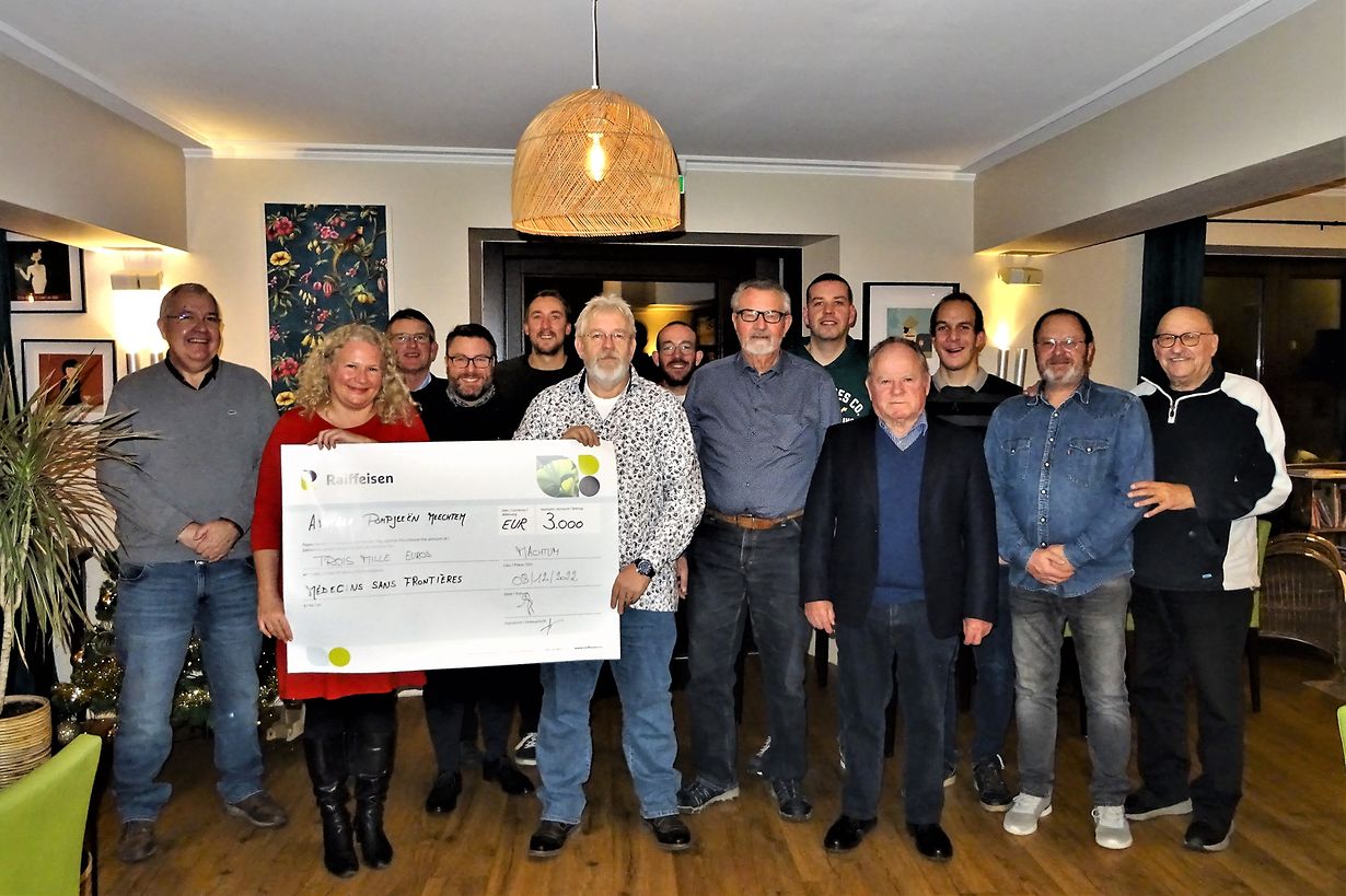 Machtum Scheckiwwerreechung zu Meechtem Jos Soffiaturo Veröffentlicht am Sonntag, 11. Dezember 2022 um 11:00 Machtum, Wormeldingen, Luxemburg Meechtem: mat hirem Erléissundeel vum bekannte Meechtemer Wäin-Schmaachen huet d’Amicale Fräiwëlleg Pompjeeën en Don vun 3000 € un d’Associatioun Médecins Sans Frontières Lëtzebuerg gemaach. Jos Soffiaturo Unpassenden Inhalt angeben Weitere Neuigkeiten von Jos Soffiaturo > Uewerdonwen inertnational Muselwanderung vun de Muselfrënn 17.10.22 Oberdonven Konveniat zu Waasserbëlleg 11.10.18 Mertert