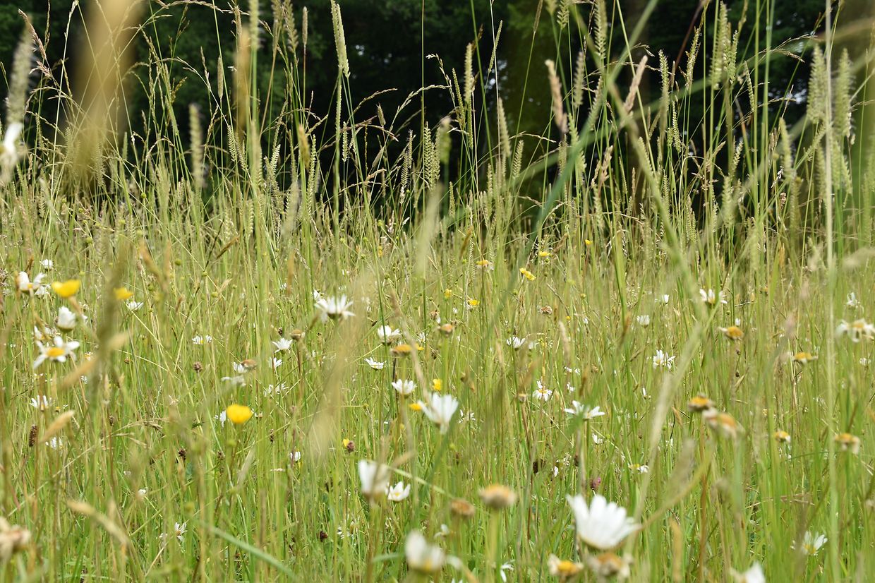 La protection de la biodiversité, du sol, du climat et des eaux souterraines est possible grâce aux prairies et pâturages à exploitation extensive ! Elles sont particulièrement importantes pour l'humain et la nature. Cependant, de nombreux habitats de prairies et pâturages riches en espèces sont menacés. La stratégie nationale pour la préservation des prairies et pâturages riches en espèces du ministère de l'Environnement, du Climat et de la Biodiversité et le plan national de protection de la nature fixent ainsi des objectifs concrets et des recommandations d'action pour leur conservation et leur restauration. Dans ce contexte, la « Stratégie pour la conservation et la restauration des prairies riches en espèces au Luxembourg 2020-2030 » a défini dix objectifs et près de 100 recommandations d'action pour la mise en œuvre des mesures de protection.
