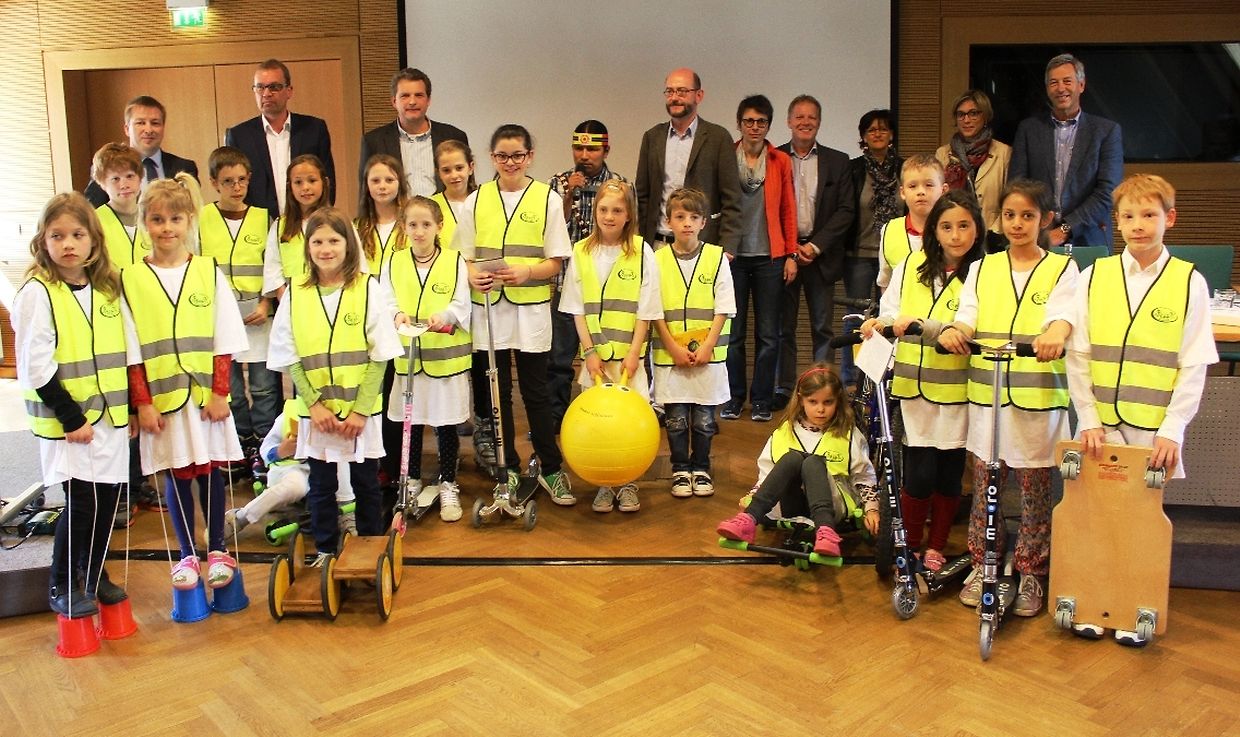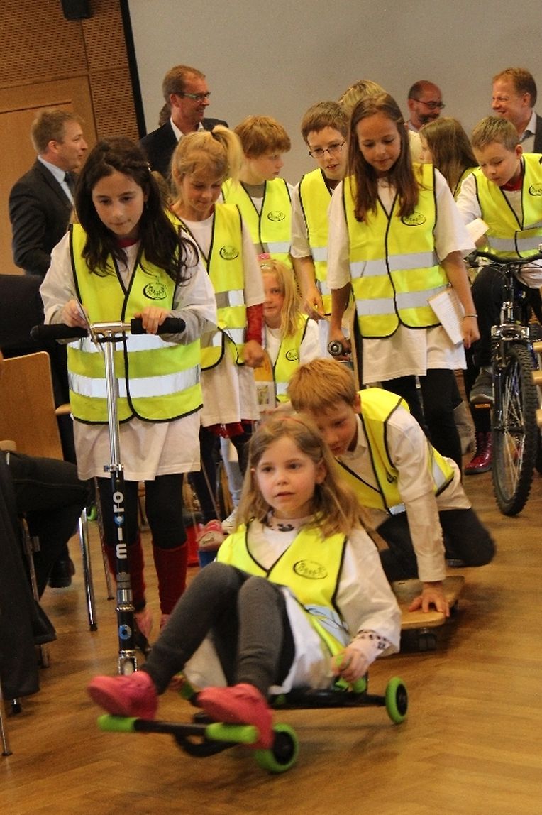 Die beiden Regierungsmitglieder sowie Paul Polfer vom Klimabündnis ermutigten die 18 Grundschüler aus Mamer und alle anderen Kinder in Luxemburg dazu, soviel wie möglich Kilometer auf mindestens zwei Rädern zu sammeln.