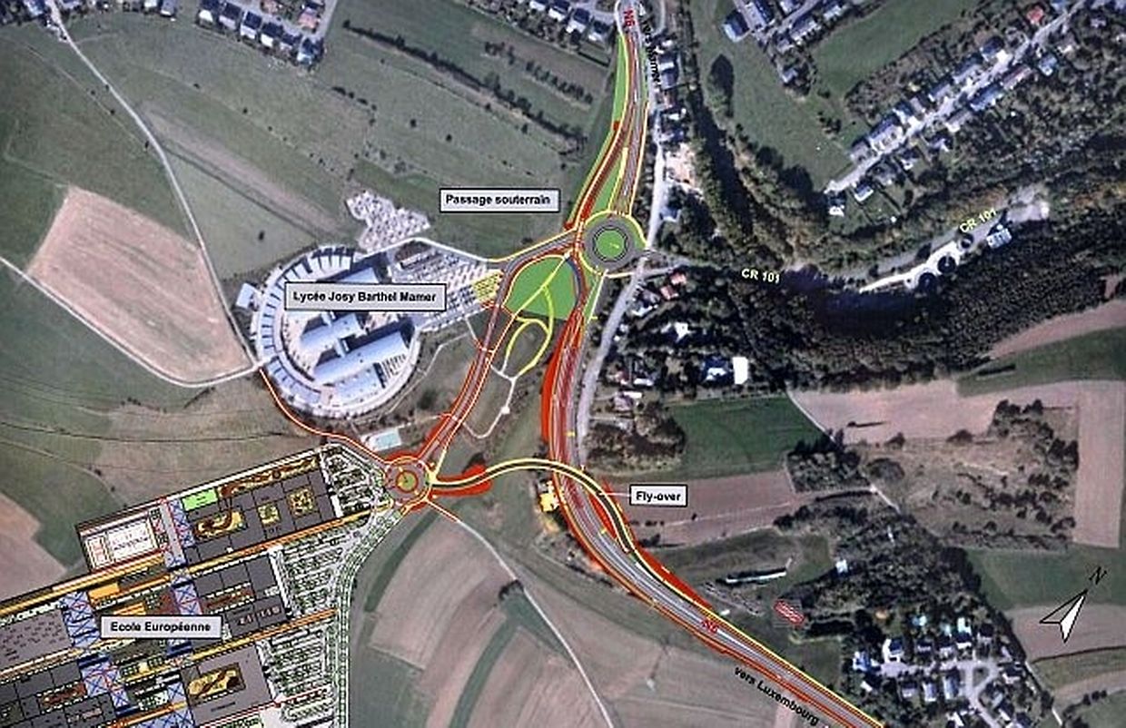 2) Die geplanten Zufahrtswege zur Europaschule von Mamer