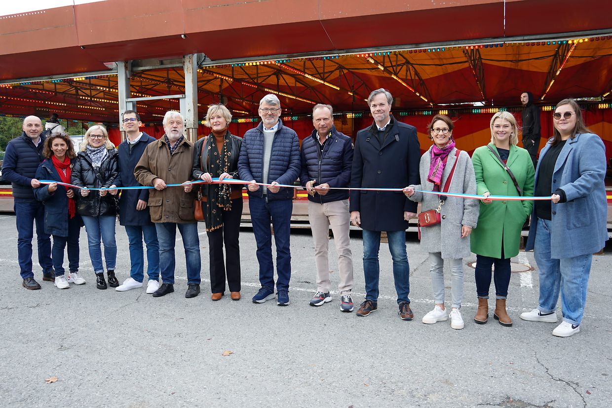 Bis zum 29. Oktober findet die Kirmes auf dem Parkplatz der Sporthalle Nic. Frantz statt. Sie wurde offiziell von Bürgermeister Gilles Roth, den Schöffen Roger Negri, Luc Feller, Schöffin Francine Closener und den Mitgliedern des Gemeinderats eröffnet.