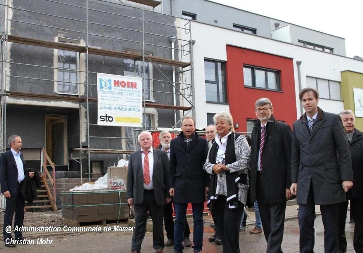 Le Fonds pour le développement du logement et de l’habitat a procédé à la Fête du Bouquet de son projet de construction sis 12 et 14-16, rue Lydie Schmit, en présence de Madame Maggy Nagel, Ministre du Logement, et de Monsieur Gilles Roth, Bourgmestre de la Commune de Mamer, le mardi 11 novembre 2014.