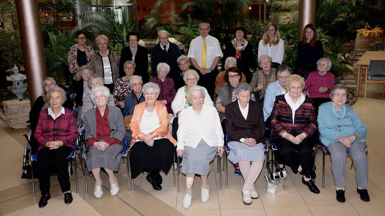 Mamer. Im "Home pour personnes âgées" (HPPA) in Mamer wurden kürzlich anlässlich ihres Geburtstags 26 Hausgäste gebührend gefeiert. Direktor Serge Berkes, Beschäftigungsleiterib Monique Kieffer, Hauswirtschaftsleiterin Joëlle Buck und Betreuungsleiterin Patricia Scholer wünschten den Hausgästen alles Gute zum Geburtstag. Bei den Geehrten handelt es sich um folgende Damen und Herren: Lydie Freylinger-Schoder (74); Robert Wies (75); Jean Felgen (80); Jeanny Cousinne-Weber (83); Adélgonde Breden-Meis (83); Joséphine Kraus-Schroeder (84); Maria Barabara Krack-Wagner (85); Georgette Schmidt-Barthelmé (86); Pierre Blom (86); Marguierite Gudendorf-Morth (87); Louise Pepin-Steichen (87);  Eugénie Scheller-Mergen (87); Marie-Josée Fettes-Rauen (87); Irène Englebert-Lallemang (89);  Félix Haas (89);  Irma Schmit-Loewen (89); Irène Reichling-Beweng (89); Germaine Bové-Godefroid (91); Hélène Kieffer-Rousselet (92); Elsy Enders-Scheuer (92); Julie Geimer-Lepage (93); Madeleine Koch (93); Rosalie Schumann-Lemmer (95) und Catherine Hames-Weyland (98). Für die musikalische und gesangliche Unterhaltung der Geburtstagskinder und ihrer Gäste sorgten der Club R des Cipa sowie der Animator Willy.  Text/Foto: André Feyereisen