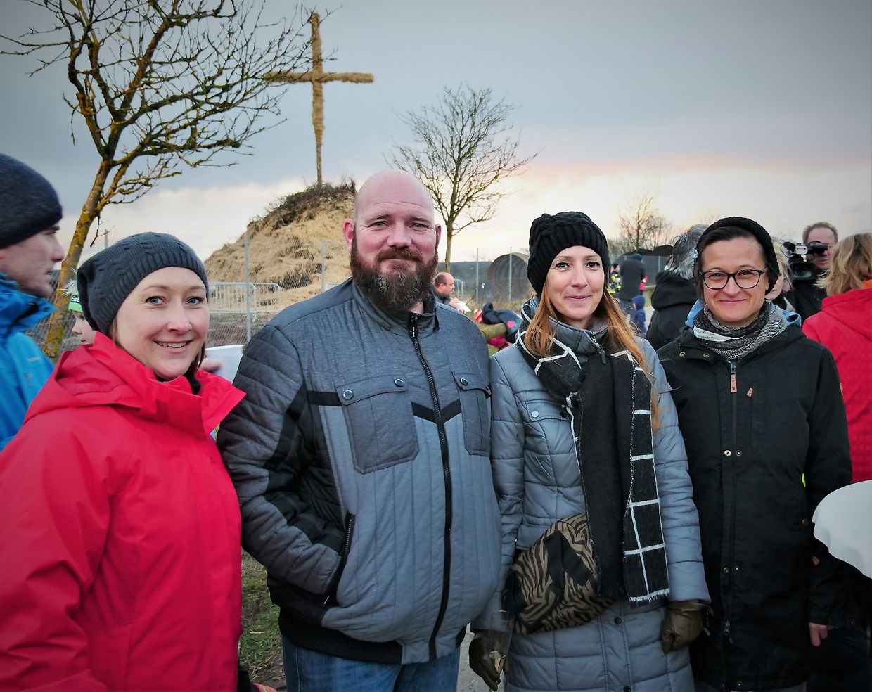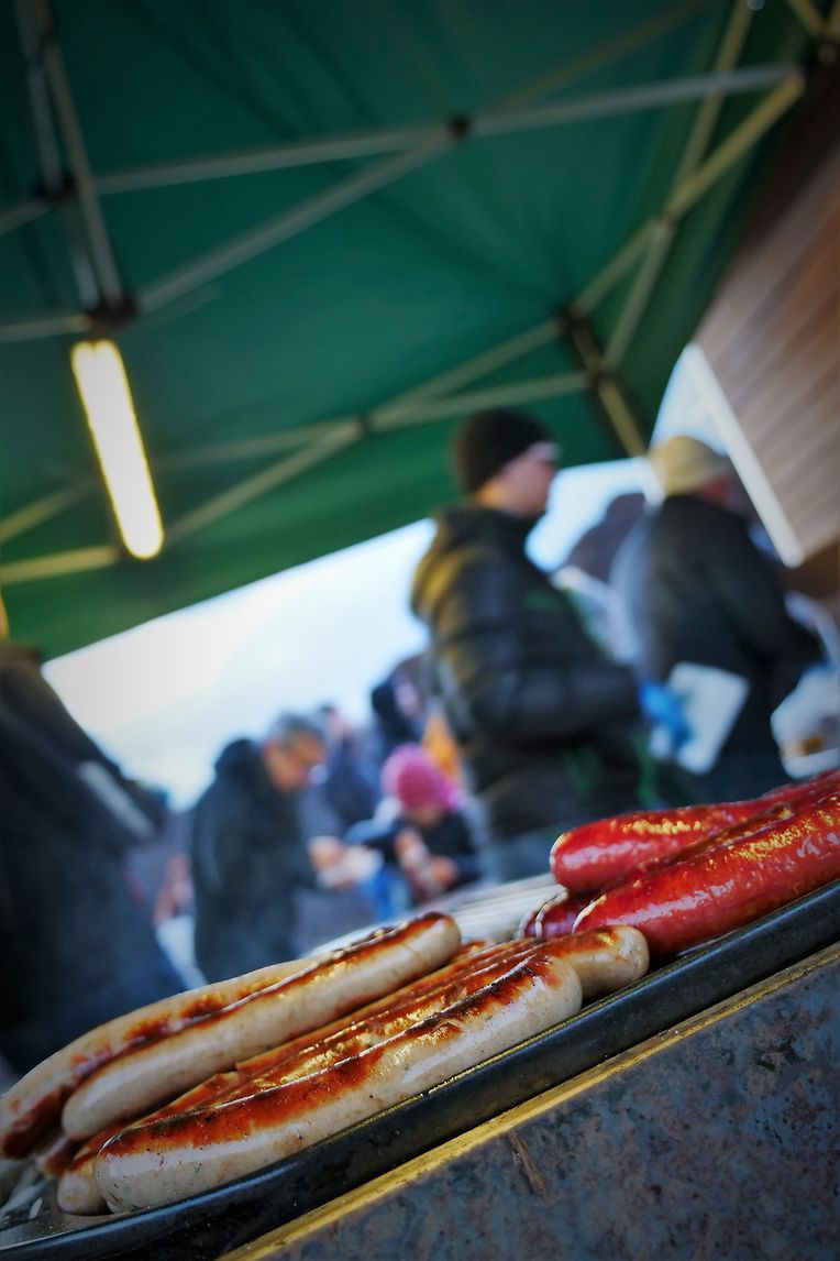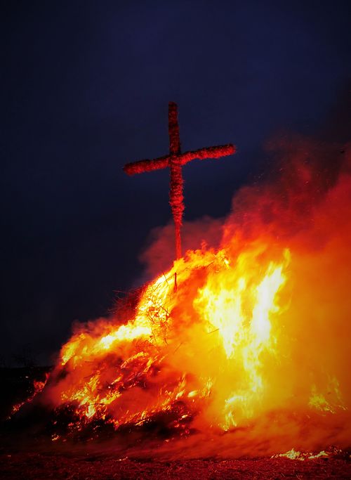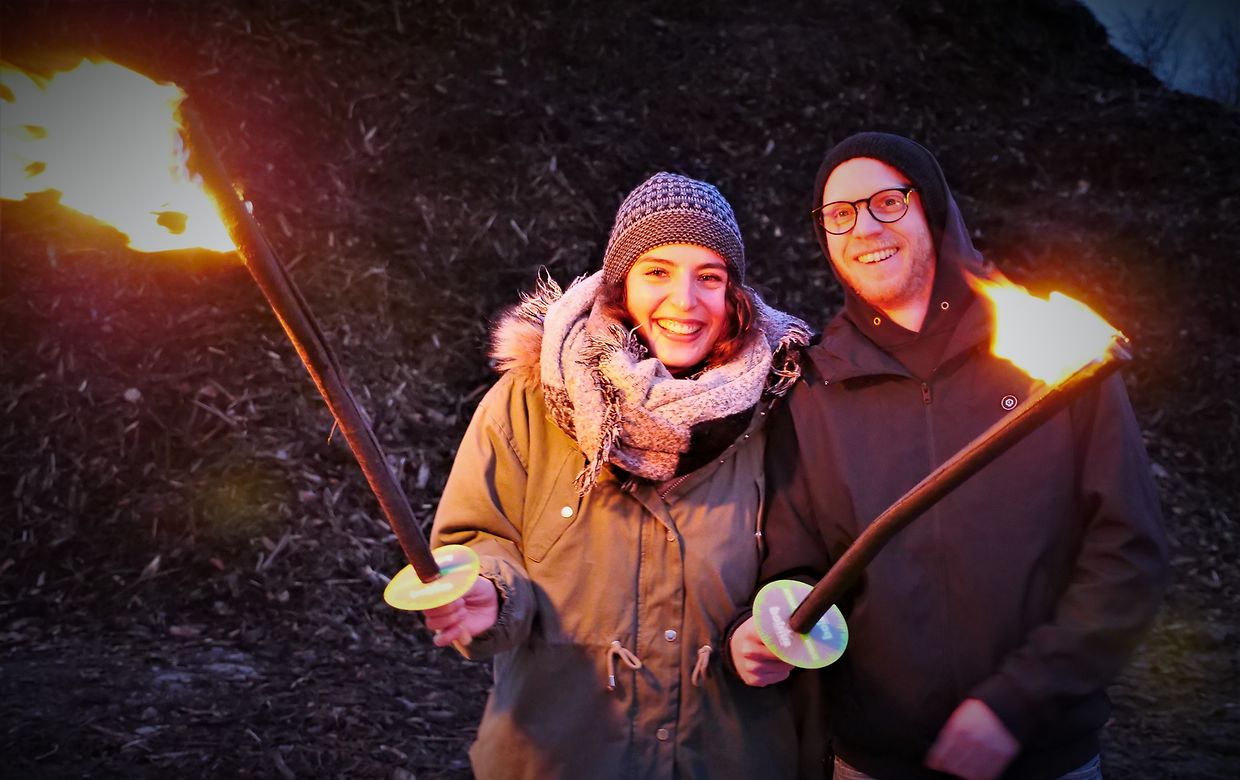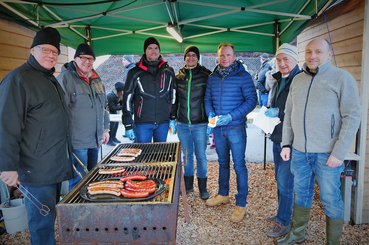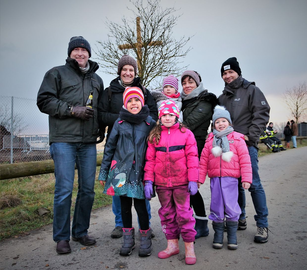 Eine Woche später sah es anfangs nicht viel besser aus, doch knapp zwei Stunden vor Beginn, riss die Wolkendecke auf und ließ einen strahlend blauen Himmel zum Vorschein. Die Schaulustigen vertrieben sich mit ein paar "Kippchen", "Humpen" und Grillwürste die Zeit ehe es gegen 19 Uhr und mit Anbruch der Dunkelheit ans Eingemachte ging: dem frisch verheirateten Paar Charlotte und Pit Brucher galt die Ehre, die "Buerg" zu entfachen. Alsbald loderte die Konstruktion lichterloh, sehr zum Vergnügen der anwesenden Kinder. Aufgehellt vom warmen Licht des Feuers ließen die Besucher den Abend mit einer wärmenden Erbsensuppe und einem letzten Drink ausklingen.