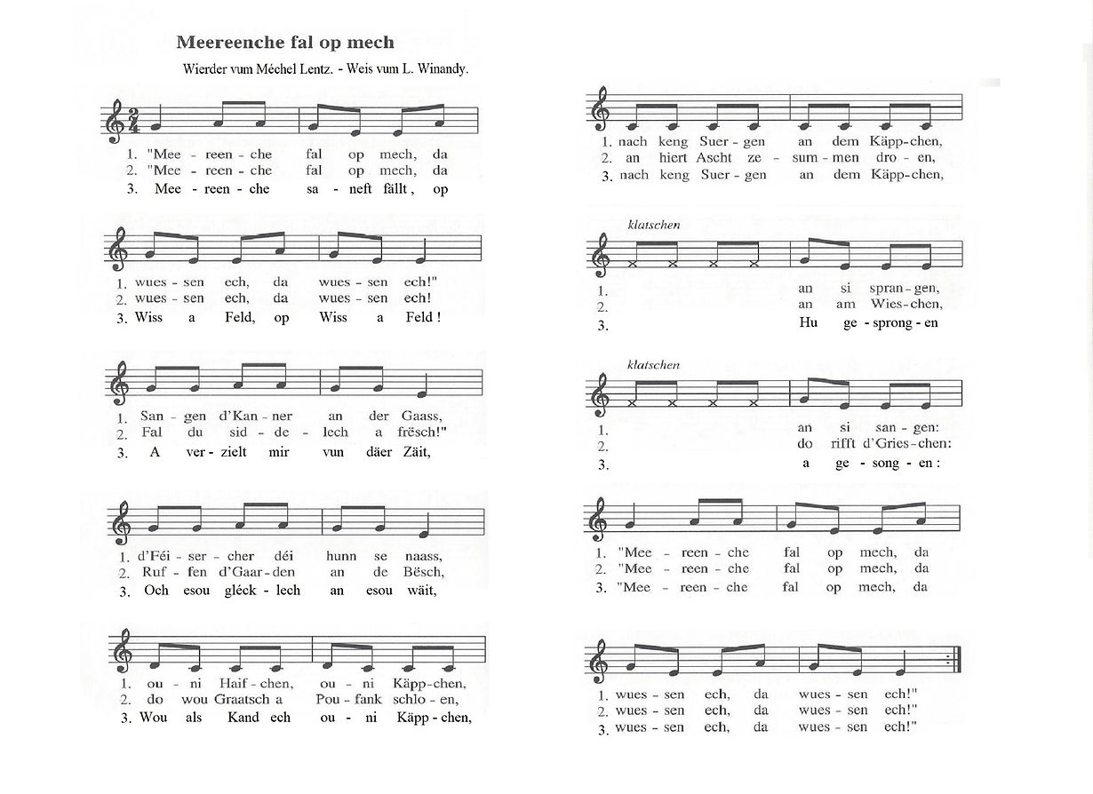 Mamer Op am Januar oder am Mee... et muss een dat bescht draus maachen ! Jean Kandel Veröffentlicht am Sonntag, 15. Januar 2023 um 10:59 Mamer, Luxemburg " EE LIDDCHE SANGEN " da verdréit een gläich alles besser ! Ëmmer alles positiv gesinn an dat bescht eraus huelen... nom Motto : Wann ee Villchen dir op de Kapp schäiss, da sief frou, Dass net all Béischt fléie kann, stell dir vir et wier eng Kou ! Unpassenden Inhalt angeben Weitere Neuigkeiten von Jean Kandel > Lëtzebuerger Lidder fir Chrëschtdag an d'Ganzt Joer...! 19.12.25 Mamer Lëtzebuerger Lidder sinn ee wichtegen Deel vun eisem "Kultuerpatrimoine" 17.11.25 Mamer Lëtzebuerger Lidder däerfen net verluer goen ! ! ! 05.11.25 Mamer Sonnenopgank iwwer Mamer... 31.10.25 Mamer Eis Lëtzebuerger Lidder sinn ee groussen Deel vun eiser Kultuer ! 04.10.25 Mamer