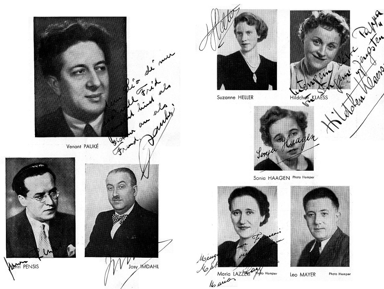 Net op der Foto: Hansi KAHN, Josette FELTEN, ( 2Dänzerinnen ) Margerite NICKELS, Madeleine LAMBERTS, Roger WARNIER an Jules a Marcel van DIEVOET (Décorsen)