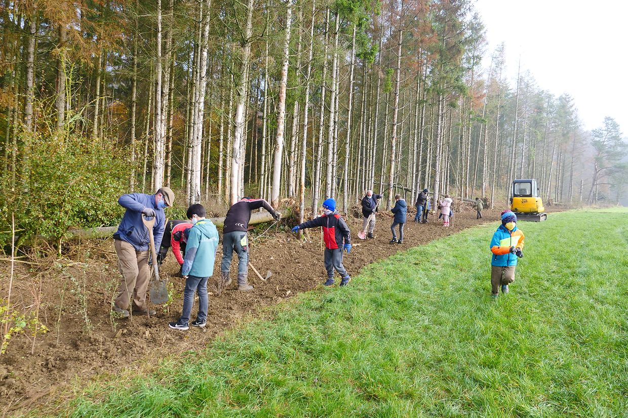 Vor Kurzem wurde im "Bierendall", in Mamer der Tag des Baumes veranstaltet. In diesem Zusammenhang beteiligten sich rund 90 Schüler der Gemeinde an einer Heckenpflanz-Aktion. Betreut wurden sie von Förster Fabrice Reuland und seinem Team, sowie von Arbeitern der Baumschule Becker aus Steinsel. Aus sanitären Gründen bestand in diesem Jahr für alle Teilnehmer der Aktion Maskenpflicht. Auf die sonst üblichen Animationen wurde verzichtet. Trotzdem hatten die Schüler des Zyklus 3 der Schulgebäude aus Mamer und Capellen viel Spaß. Vor dem Pflanzen der ungefähr 2.000 Heckensetzlinge gab es einige Erklärungen über den Wald und seine Bewohner von Förster Reuland. So erfuhr der Nachwuchs zum Beispiel, dass Hecken und Bäume CO2 binden, das Erdreich festigen und vielen Insekten und Vögeln Schutz bieten. Nach der Aktion konnten die Kinder sich mit Gebäck und Saft für den weiteren Schultag stärken. Im Zuge der Heckenpflanz-Aktion wurden auch 83 Bäume für die Neugeborenen der Gemeinde in den Boden gesetzt. Neun Bäume der letztjährigen Aktion, die in der Sommerhitze vertrocknet waren, wurden ebenfalls ersetzt. Die traditionelle, mit der Baumpflanz-Aktion verbundene Zeremonie wurde aber aus sanitären Gründen auf ein späteres Datum verschoben.