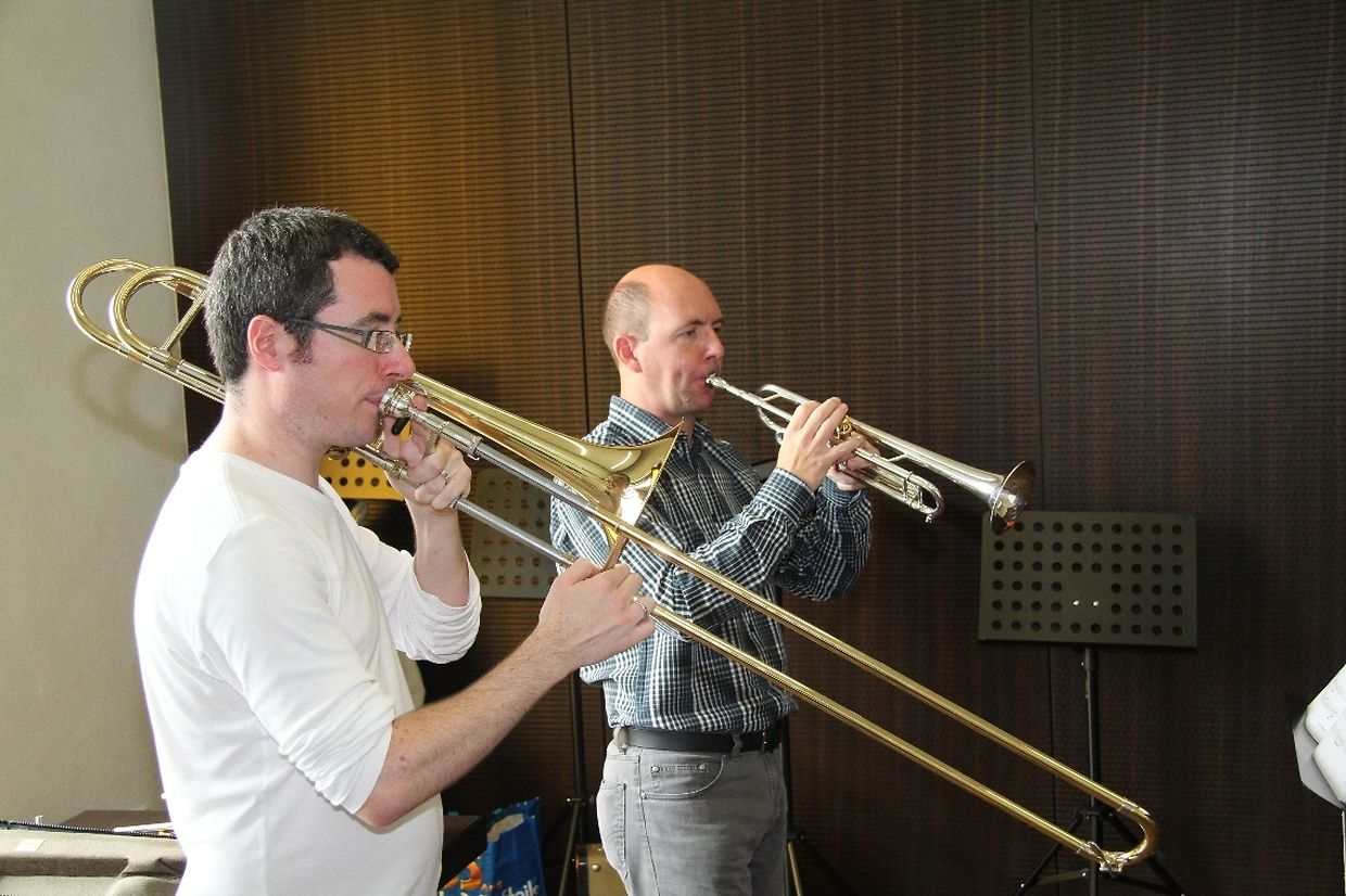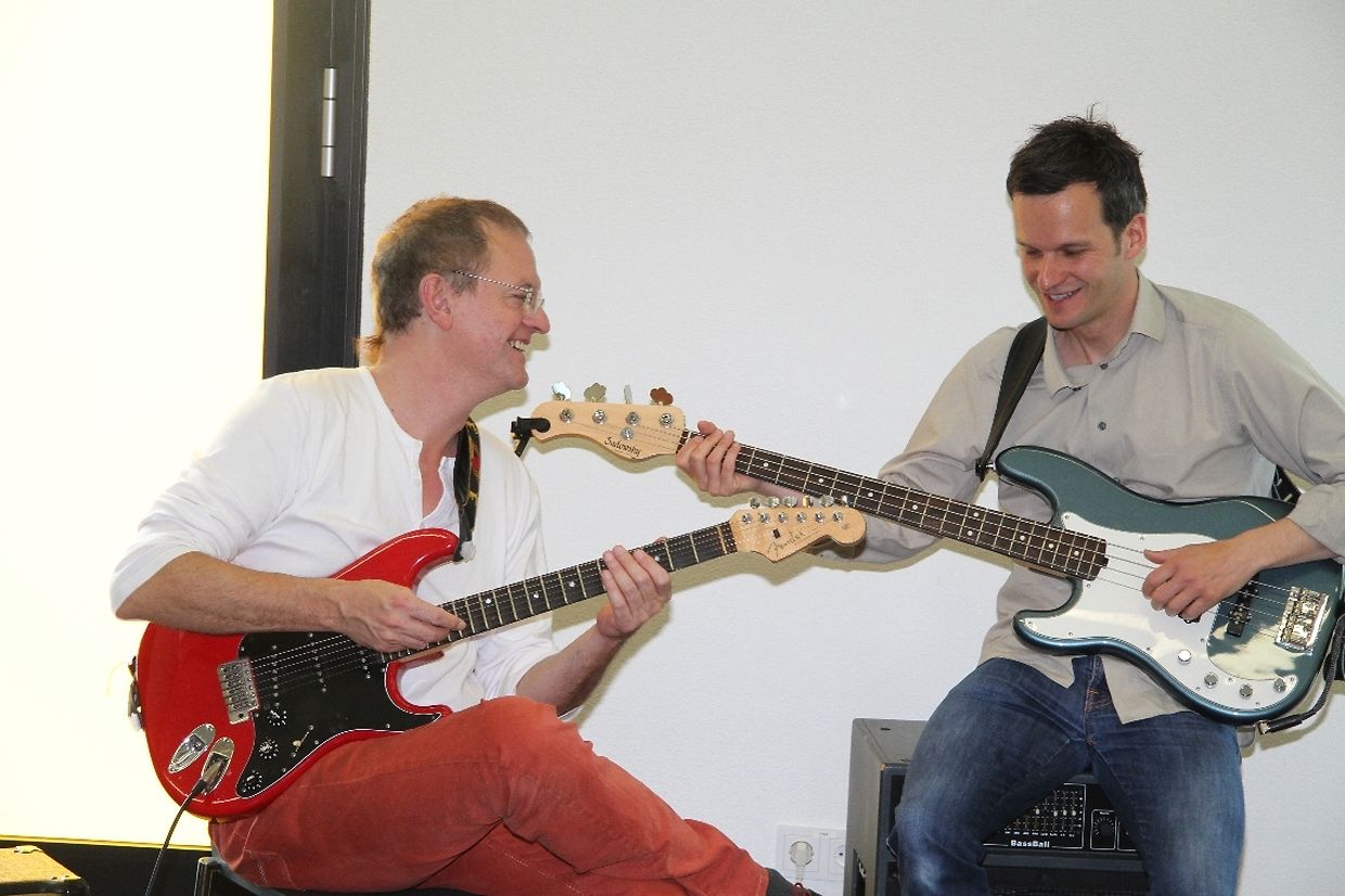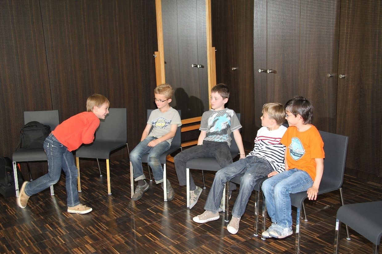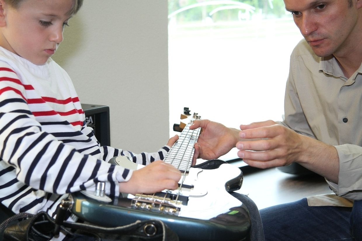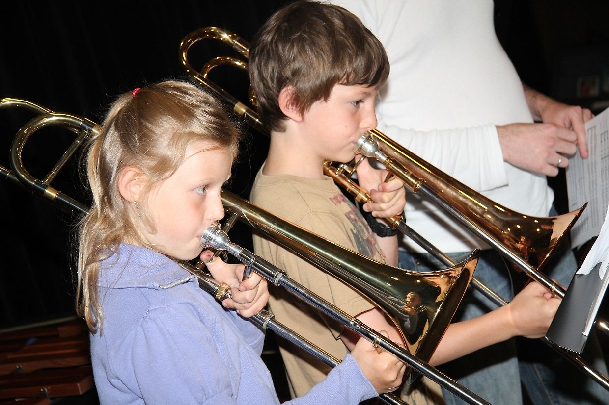 Die Schulkinder der zweiten Klasse aus Mamer konnten sich drei Stationen aus den angebotenen sechs aussuchen. Um die 80 Schüler passierten an dem Tag im Kulturzentrum. 20 Minuten waren vorgesehen pro Workshop in denen die Kinder die Möglichkeit hatten die verschiedenen Instrumente kennenzulernen, sie anzufassen, anzuhören und darauf zu spielen. Hoch im Kurs lag der in diesem Jahr neu angebotene Schlagzeugkurs, doch auch die Elektro-Guitarre und die Blasinstrumente waren beliebte Ziele der vielleicht angehenden Musiker.