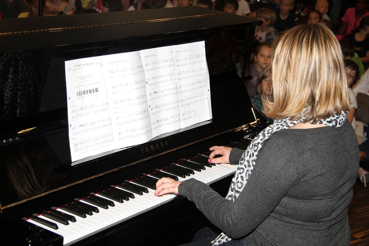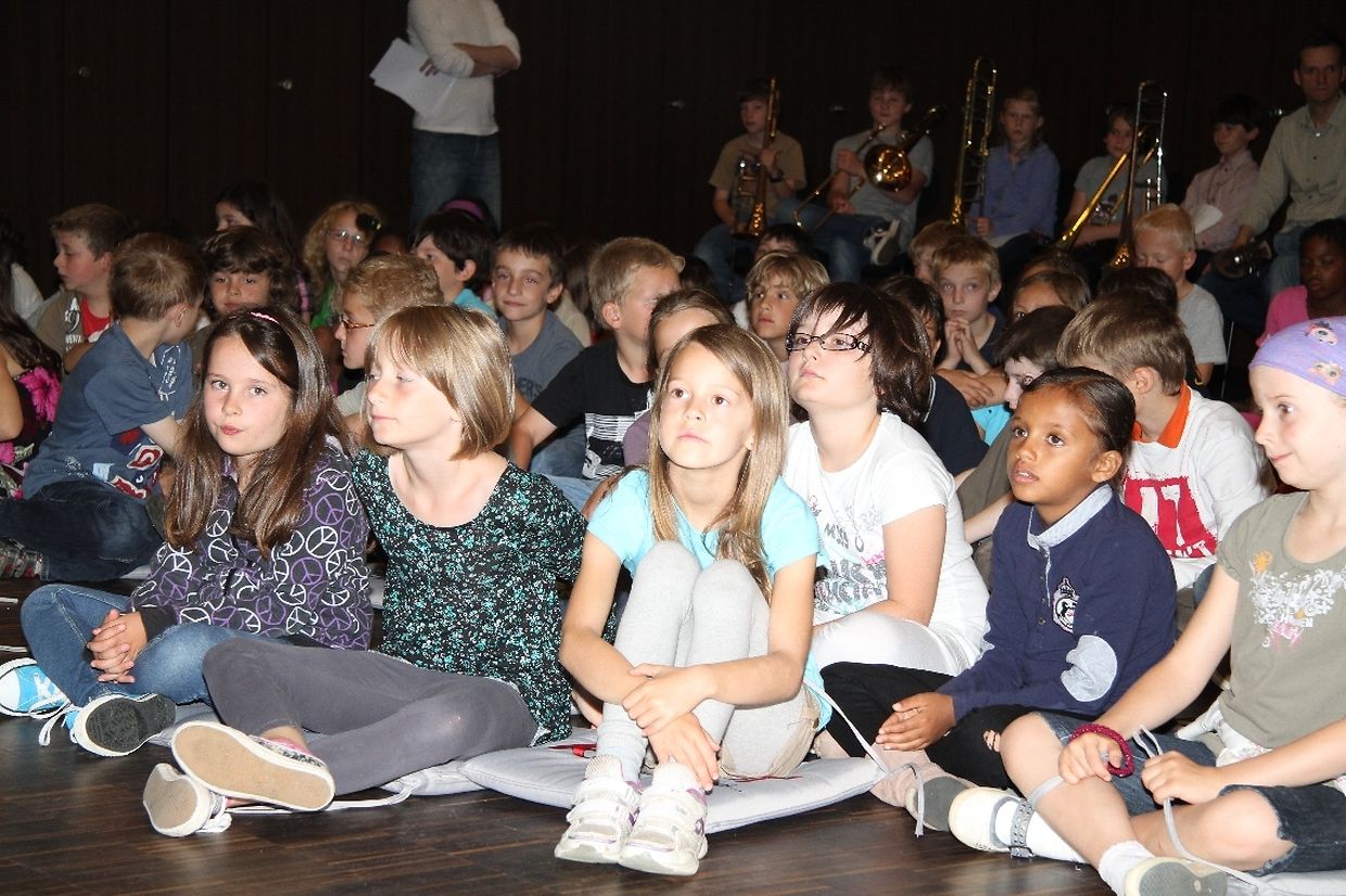 Die Schulkinder aus der fünften Klasse gaben ein Konzert für die jüngeren Schüler und stellten mit Begeisterung ihr Können zur Schau.