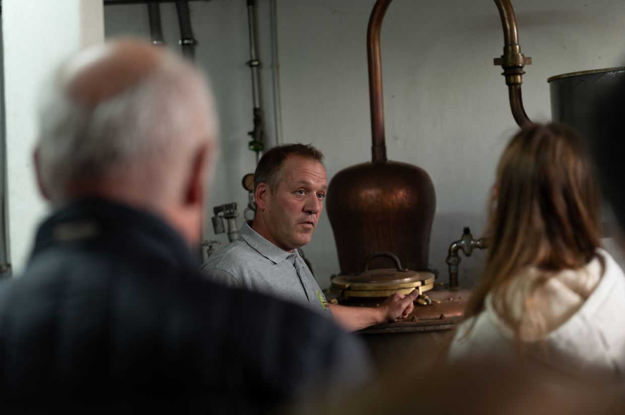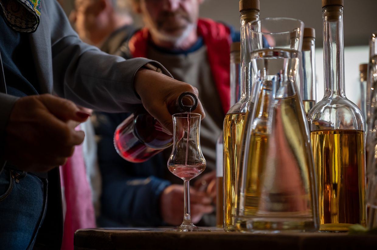 E flotte Programm, deen duerch Gemeng Helperknapp gefouert huet gouf ofgehalen. D’Presidentin vum LEADER Lëtzebuerg West, d’Christiane EICHER-KARIER huet d’Participante virum Site vum Mariendall begréisst. Mat engem Oldtimerbus goung et dunn bei de Regionalproduzent Gansen-Diseviscourt an de Fënsterdall, wou de Prozess vum Brennen erkläert gouf an d’Participanten och verschidden Drëppen a Likör konnte schmaachen a kafen.