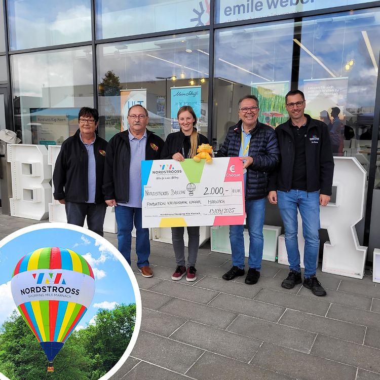 Mir soen dem René Metz (Modellballonen Lëtzebuerg asbl) e grousse Merci fir de flotten Nordstrooss Ballon, deen heen eis mat vill Léift a Präzisioun gebitzt huet. Dem René säi ganzen Engagement gëllt dem gudden Zweck, sou dass mir an deem Kader en Don vun 2.000 € un d'Fondatioun Kriibskrank Kanner (aide aux enfants atteints d'un cancer) gemaach hunn 📷