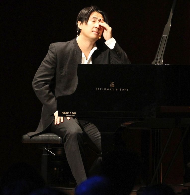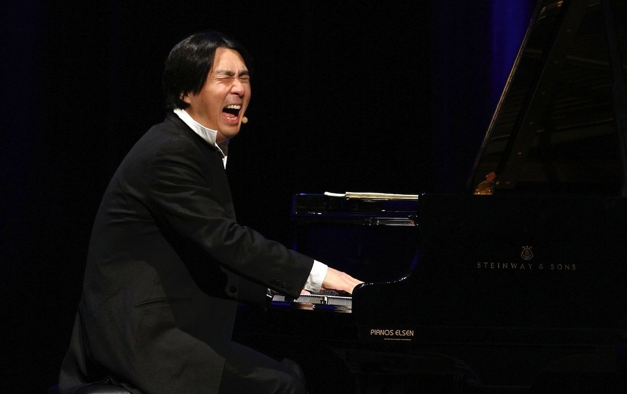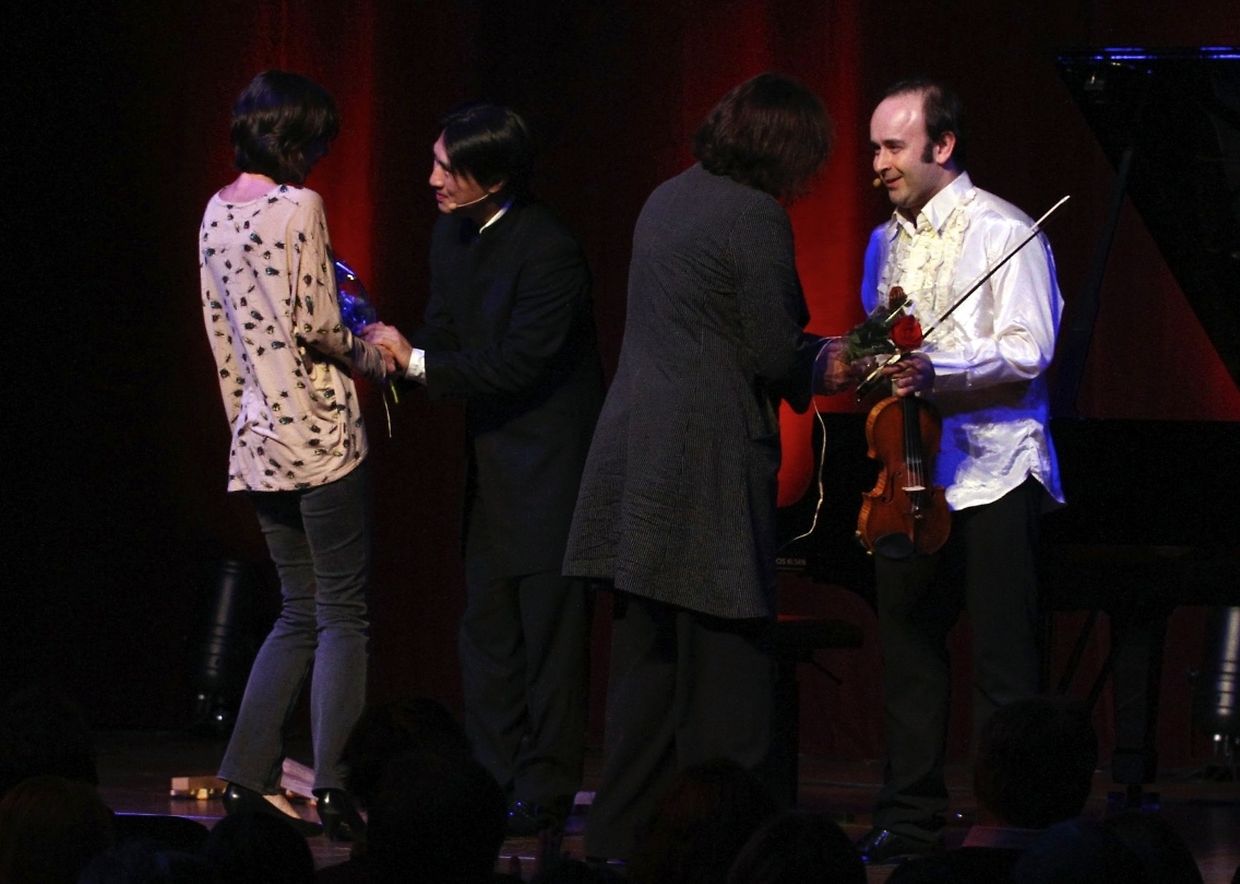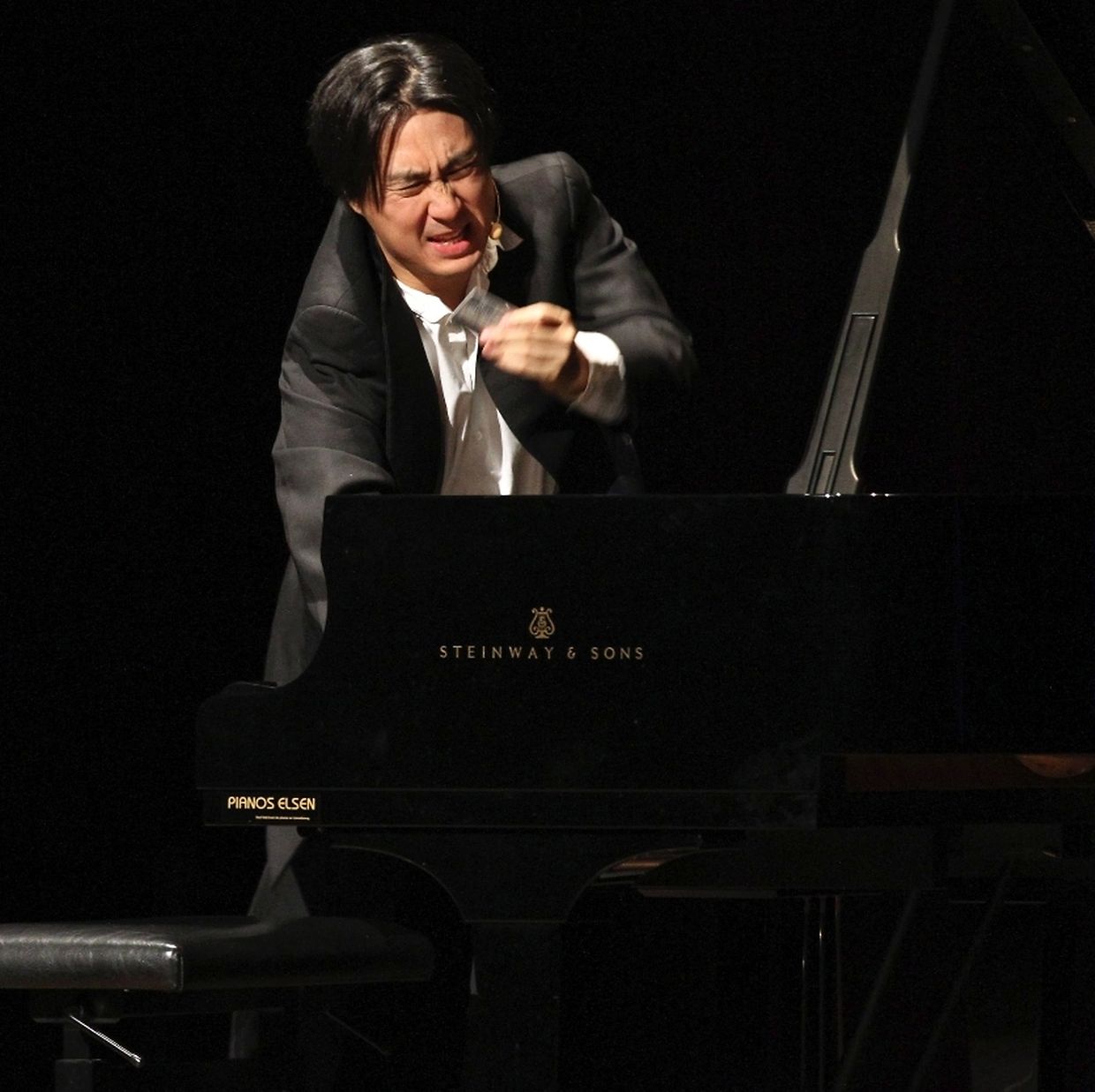 Wer sich bis dato eingebildet hatte, dass der 1. Satz von Mozarts Sinfonie Nr. 40 keinesfalls geeignet sei, als Titelmelodie von James Bond zu fungieren, wurde am Samstagaben in Marnach eines besseren belehrt. Nichts scheint unmöglich in den Augen der beiden Künstler. Da wird kurzerhand der Beatles Song „Ticket to Ride” zur barocken Koloraturarie und endet zur allgemeinen Begeisterung in schrillen kubanischen Rythmen. Selbst Rachmaninov´s Prelude in C-Sharp Minor, Op 3, No. 2, die anfangs an den kleinen Händen des Pianisten Joo zu scheitern drohte, wird letztendlich doch noch mit Bravour und diversen hölzernen Hilfsmitteln zum wahren Ohrenschmaus.