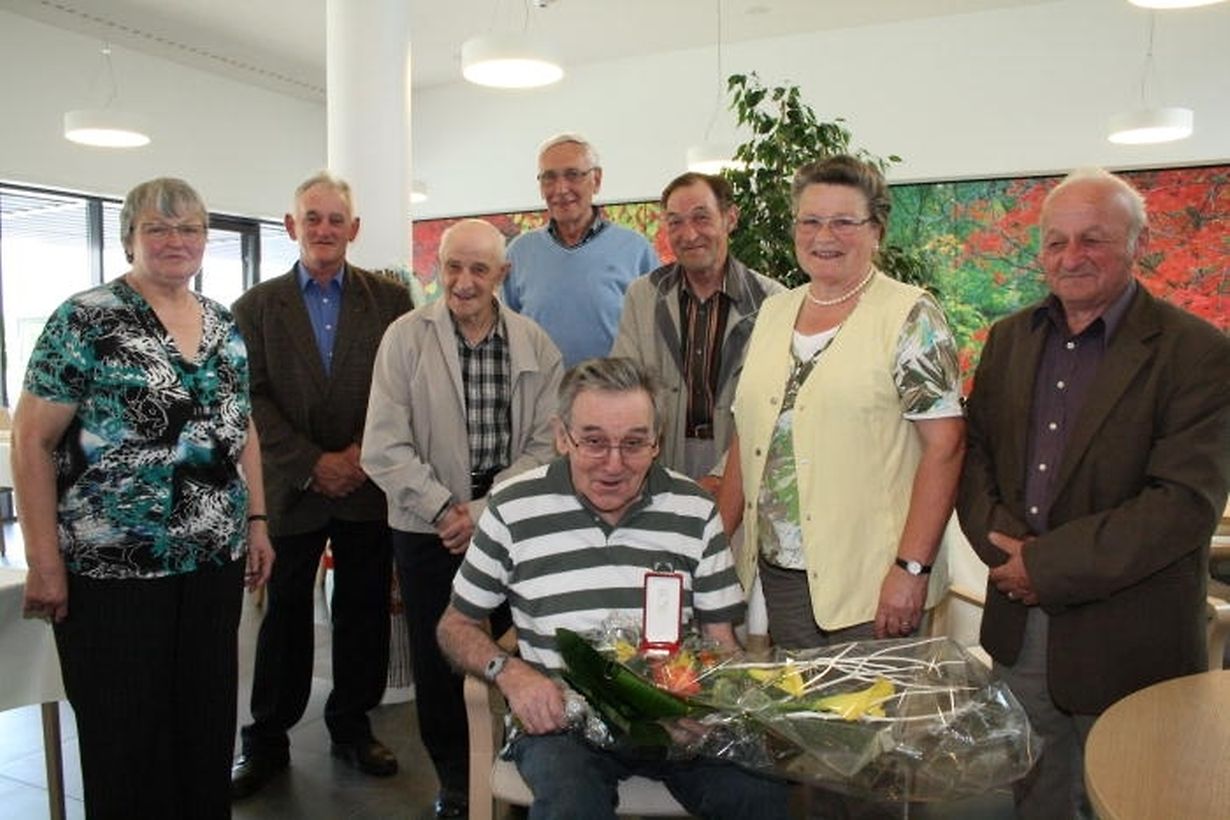 Vor 50 Jahren trat Mathias genannt Metty Daman aus Maulusmühle in den damals neu gegründeten Chor Sassel-Maulusmühle ein. Zu diesem Jubiläum wurde ihm der „Ordre de Mérite, Chevalier“ seitens des Kulturministeriums zuerkannt. Da die gesundheitliche Verfassung des Geehrten es nicht ermöglichte, den Orden in der Stadt Luxemburg entgegennehmen zu dürfen, beschlossen die Chormitglieder Alphonse Bock, Théo Van Miltenburg, Denise Bock, Adele Fuchs, Raymond Daman, Pierre Weber und Nicolas Bock, ihrem Präsidenten im „Home pour personnes âgées St-François“ in Clerf diesen höchsten Orden, der von Großherzog Henri und Premierminister Jean-Claude Juncker signiert ist, zu überbringen. Der Geehrte war sichtlich erfreut über diese besondere Auszeichnung, und die Zusammenkunft wurde mit einem „Patt“ und einem Imbiss abgeschlossen.(TEXT/FOTO: NICOLE MILBERT)