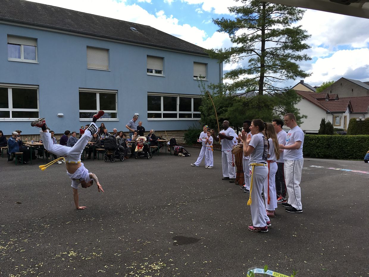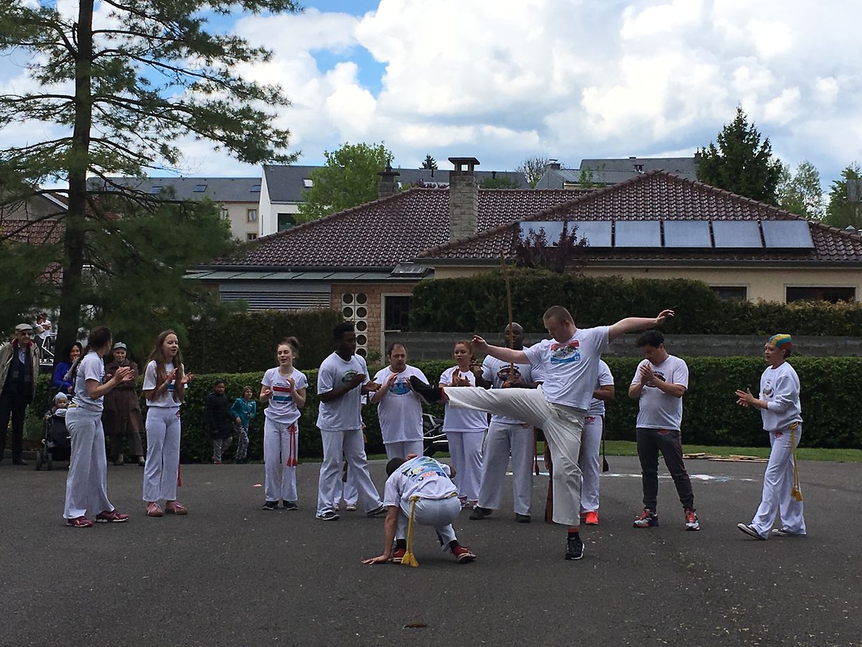 Im späten Nachmittag präsentierte die luxemburgischen Gruppe Abada Capoeira Luxembourg eine Demonstration vom brasilianischen Kampfsport « Capoeira », bei welcher Personen mit Trisomie21 aktiv mitwirkten. Jeder Teilnehmer wird gleich in die Gruppe aufgenommen ob mit oder ohne Behinderung. Es handelt sich hier also um ein perfektes Beispiel von Inklusion.