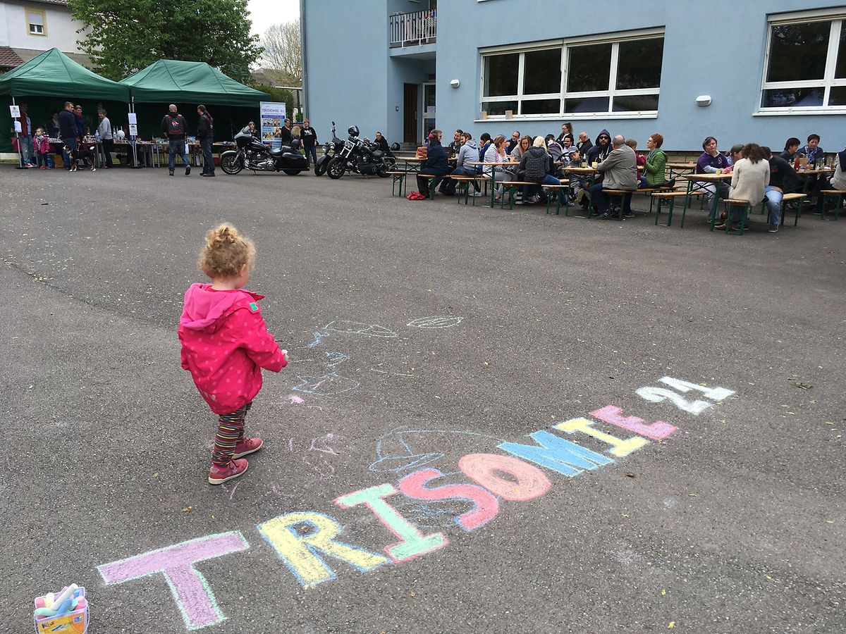 Die A.s.b.l. Trisomie 21 Lëtzebuerg organisierte am Samstag dem 20.Mai 2017 das zweite Mal den « TrisoMie21 - Maart - Menster ». Im Rahmen des « 72 Stunden Bénévolat Lëtzebuerg » fand in Mensdorf ein Fest statt, welches Groß und Klein ansprach. Geboten wurden diverse Trink-, Grill- und Kuchenstände, Kirmesspiele (Entenfischen, japanisches Billard, Balancespiele…) sowie eine Rundfahrt mit dem Motorradclub MC Roude Léiw Lëtzebuerg, was alles für viel Attraktion sorgte. Jeder Besucher hatte die Möglichkeit alles auszuprobieren, worauf er Lust hatte, was mit sich brachte, dass kein Unterschied gemacht wurde, ob jemand eine Beeinträchtigung hatte oder nicht. Ein fröhliches Miteinander konnte somit problemlos stattfinden.