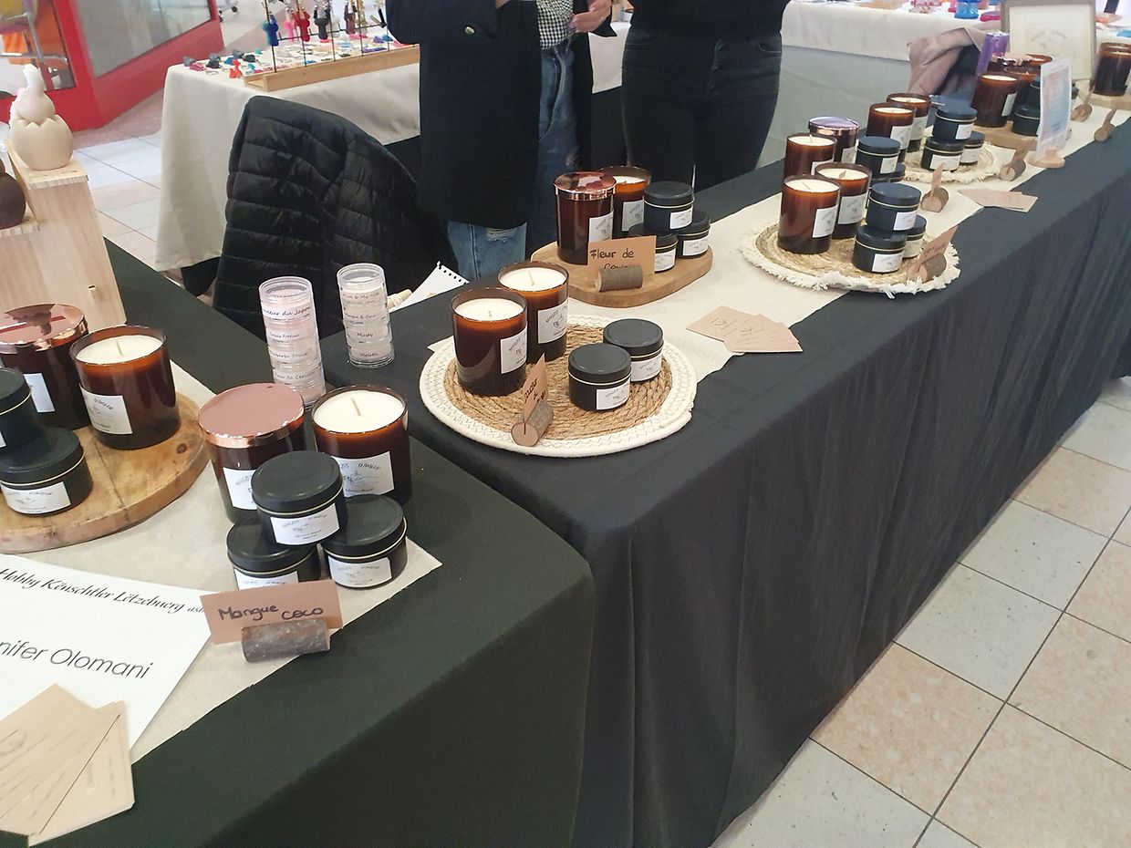 Diana Alff-Thom, Diana's Stick und Nähstube; Pascale Arensdorff-Oé, Pascale's, Poschen a méi; Mélanie Bichel Augusto, Bitzen, Made by Melabert; Alexia Boher, Bitzen; Alexandra Cartus, Bitzen a Broderie; Christiane Chrisnach Ciuca, Diamond Painting; Marisa Ferreira Batista, La résine époxy dans toutes ses formes; Marc Fetler, Holzspillsaachen; Marino Fumanti, LEDsLASER; Hannah Gerten, Bitzen; Pascale Grivet-Fideler, Bitzen; Andrzej Grzanka, Kleine dekorative Holzprodukte; Malou Hebert-Kemp, Patchwork; Rita Hellers-Kohl, Kreativ Keramik; Josée Homann, E'er molen bueren fräsen; Madeleine Juncker-Reuter, Patchwork; Margo Kesseler-Vrehen, Natuirseefen; Françoise Lanners, Heekelen; Muriel Lemogne, Knuddel4Kids; Eliane Lothritz, Kosncht aus Bicher ; Michèle Menestret, Klëppelen; Lucia Mota, atelier Mota couture creative; Henriette Nittel, Autorin; Jennifer Olomani, JD "Bougie d'amour"; Marina Pinto Monteiro, Kerzen; Chantal Rizzi, Keramik; Sonja Scheuer, Bitzen; Beby Schickes-Dahm, Schaf und Alpakas Produkte; Simone Schiltz, Poschen & Co by Simchen; Gaby Servais, dentelle aux fuseaux; Tessy Stammet-Boettel, Schmuck aus Glaspärelen; Henriette Steines-Fernandez, couture; Imelda Watelet, coquilles d'oeufs décorées; Marie-Josée Weber, Kaarten; Christiane Weiler, Bijouen mat Natursteng.