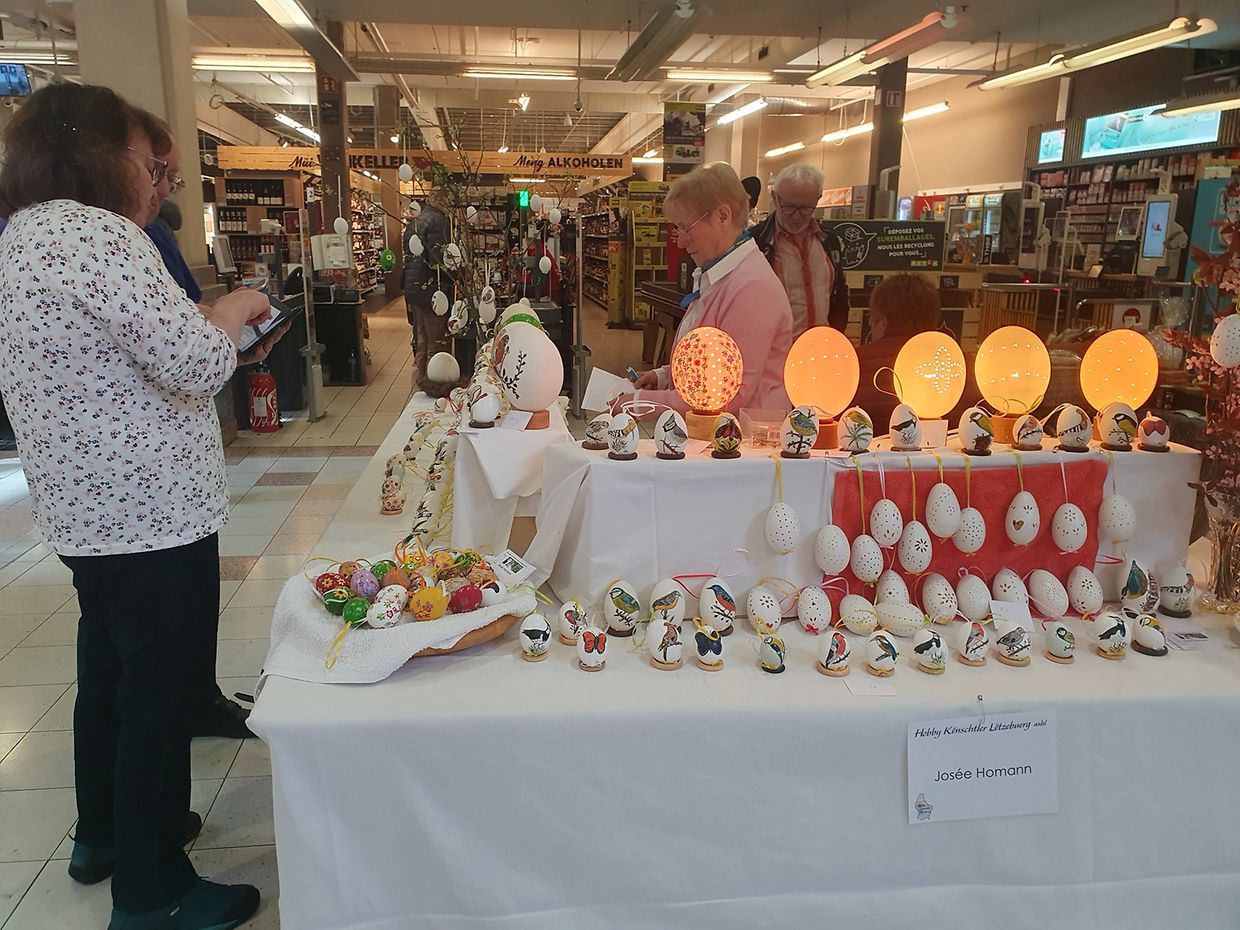 Den 23. a 24. Mäerz hu 35 Membere vun „Hobbykënschtler Lëtzebuerg asbl“ am Topaze Shopping Center ausgestallt. Wéi op all eise Mäert huet een nëmme Saachen aus eegener Produktioun konnte bewonneren.