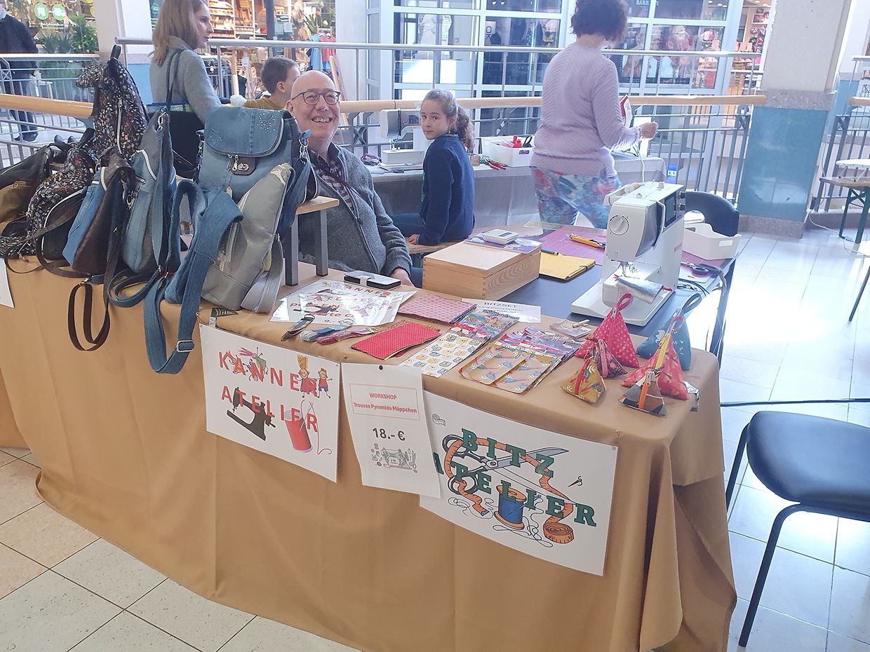 Am Atelier 1 konnten d’Leit selwer maachen: Porteclef (fir Kanner) & eng Mäppchen (a Pyramideform), am Atelier 2: Housse fir e Kappkëssen & Schachtelen, am Atelier 3: Nuesschnappech- Housse. Postkaart brodéieren an am Atelier 4 : Scrunchie/Hoerlastik, Hoerband & Handysëtzkëssen