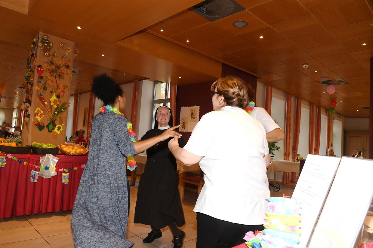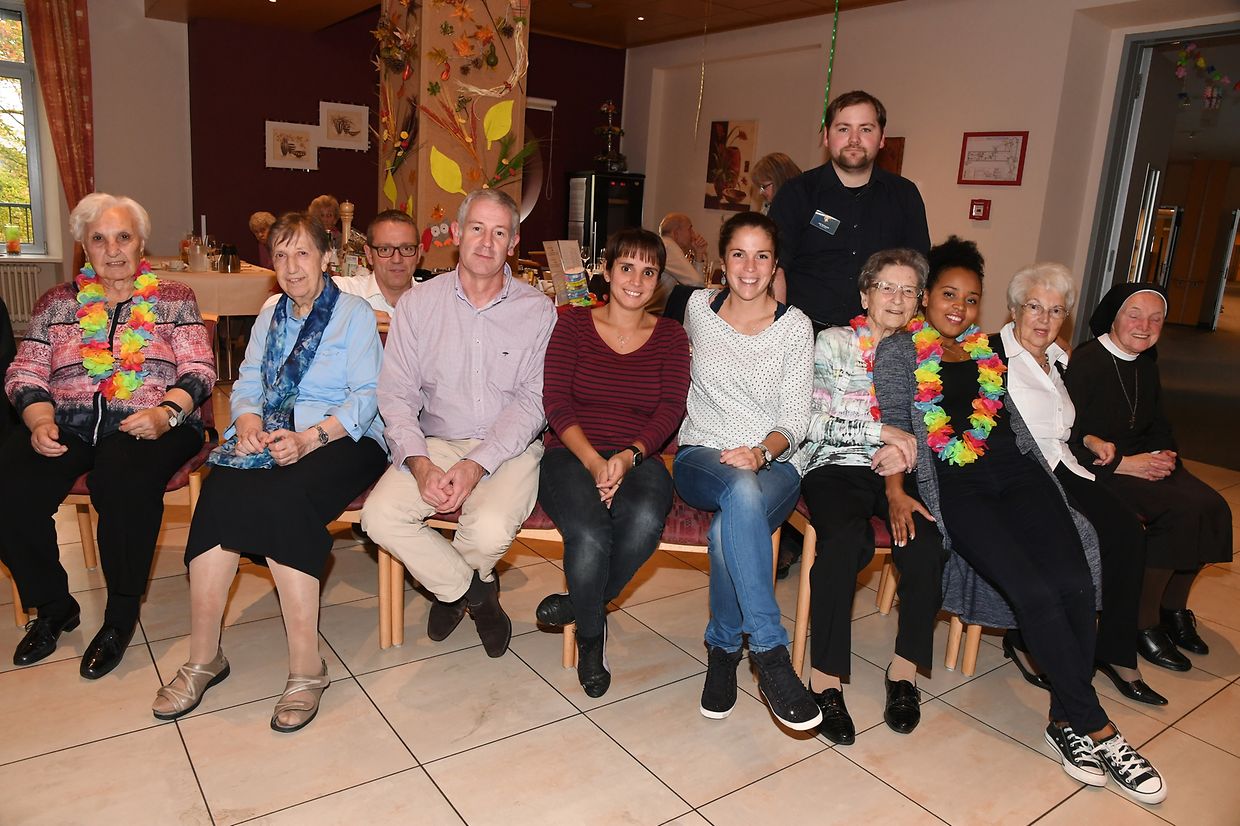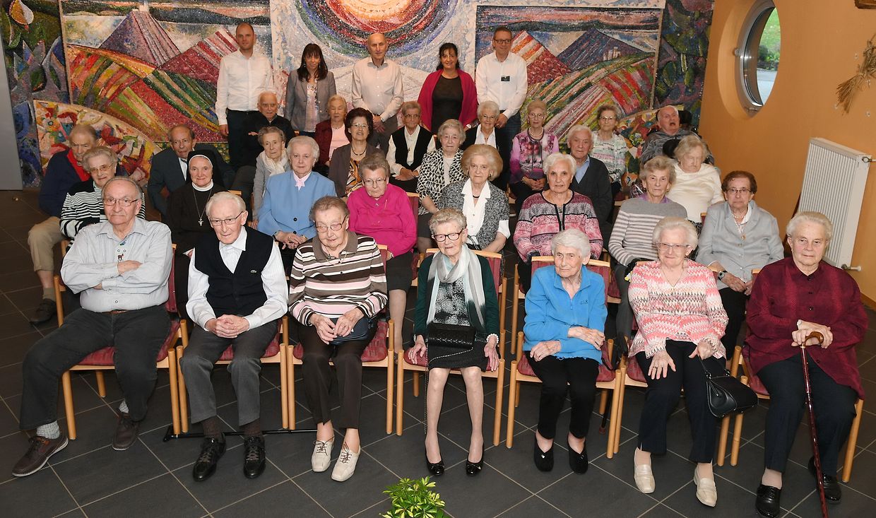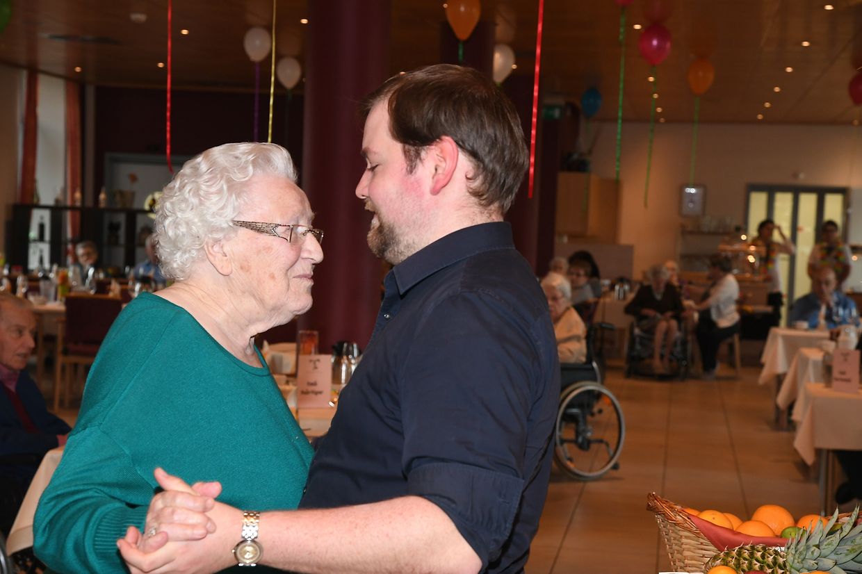 Mersch: Die beliebte Geburtstagsfeier für die Bewohner des „Home pour personnes agées“ in Mersch bereitet den Jubilaren mit ihren Familienangehörigen jedes Mal sehr viel Freude. Dieser Tage wurden 33 Jubilare der Monate Juli bis Oktober im bunt mit Luftballons geschmücktem Restaurant, geehrt. Direktor René Wirth überbrachte zusammen mit Oberin Paule Detampel und Nicky Wintringer, im Namen der ganzen Belegschaft allen Jubilaren die allerbesten Glückwünsche des Hauses. Wünsche denen Christiane Haubrich- Schandeler, Henri Krier, Carine Brosius und Georges Herr in Vertretung der Gemeinden Mersch und Lintgen sich auch gerne anschlossen. Höhepunkt der Feier war ohne Zweifel das Anschneiden des großen Geburtstagskuchens. Dabei sorgte Akkordeonist Ferdy mit dem Animationsteam aus dem Club „R“, den ganzen Nachmittag über für beste Geburtstagsstimmung. Folgende Jubilare kamen zu Ehren: Marie- Jeanne Hoffmann- Neyens (70 Jahre), Marguerite Heger (73), Margot Horst- Feller und Virginie Kasel- Ury (79), Anne Mathieu- Kirchen, Agnès Feltes und Josée Frieseisen- Hennico (81), Martin Lieffring (83), Alice Molitor- Heinen, Clement Bisenius und Marcel Rasquin (84), Alice Fischbach- Fack, Maria Pletschette und Triny Fallis- Meyers (85), Maria Brosius- Lehnerts und André Kayser (86), Eugénie Schoen- Hoerold, Sr. Pierre- Marie Schmit, Catherine Kayser- Wallin, Maria Heuts- Kruijen und Mariette Muller- Wagner (87), Maria Weis- Watgen, Anny Etscheid und Sr. Franziska Berens (88), Amélie Ewen- Frisch und Philippe Nicolay (89), Justine Raach- Klein (91), René Stumpf und Alphonse Wiseler (92), Anna Bodeving- Kerger und Marie Tissier- Daubenfeld (93), Emile Wies (94) und Alice Losch- Haan (95). (TEXT (FOTOS: CHARLES REISER)