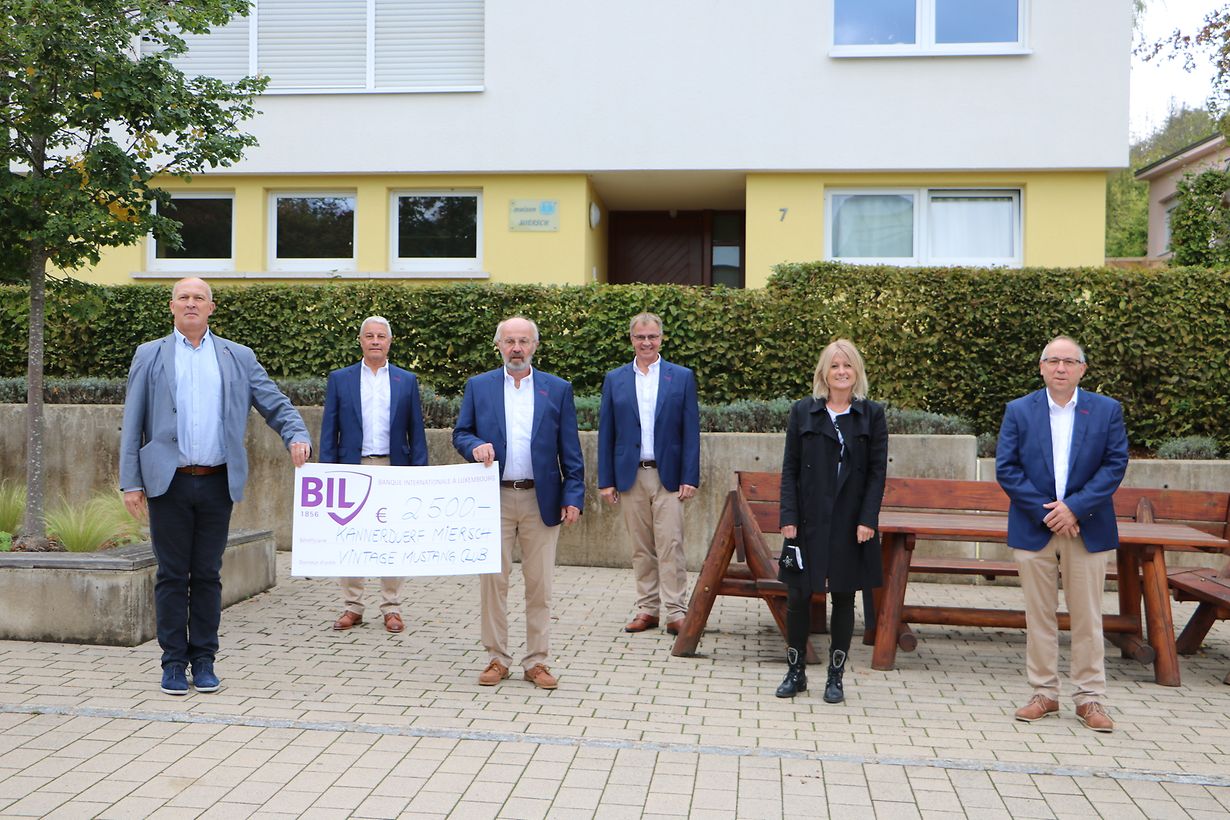 Am Kader vun enger klenger Feier um Site zu Miersch vum SOS Kannerduerf Lëtzebuerg huet de Präsident Nic JUNGERS an Memberen vum Comité vum Vintage Mustang Club of Luxembourg e Scheck vun EUR 2.500,- un d‘Direktioun vum Duerf, vertrueden duerch Mme Cynthia CONZEMIUS an den Här Jean-Paul KARPEN, iwwerreecht.