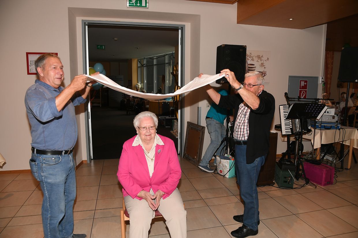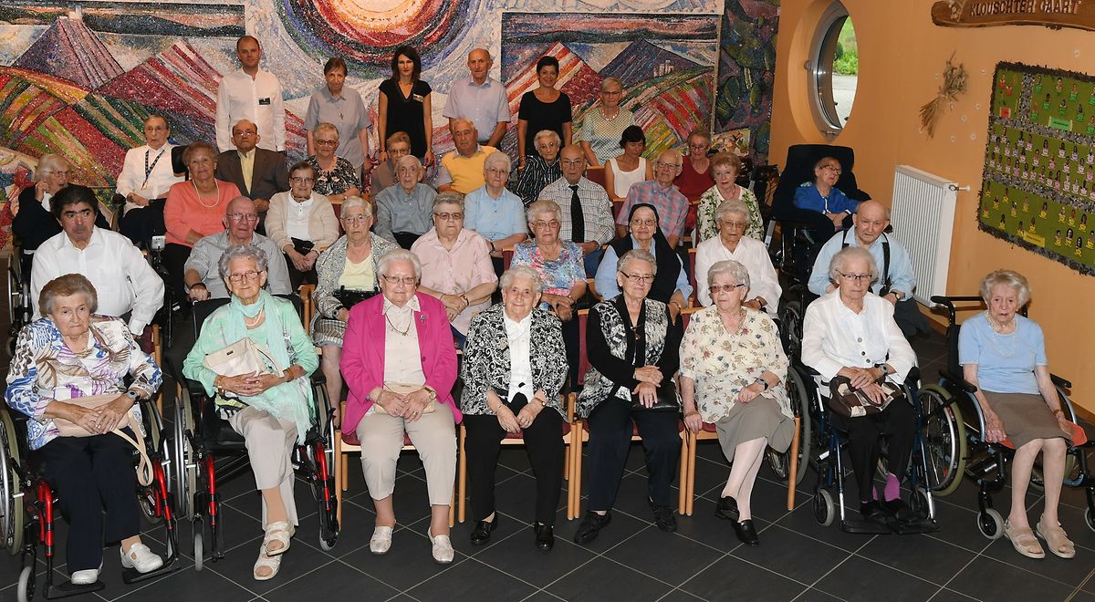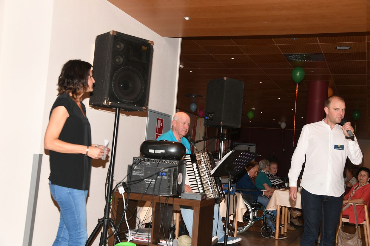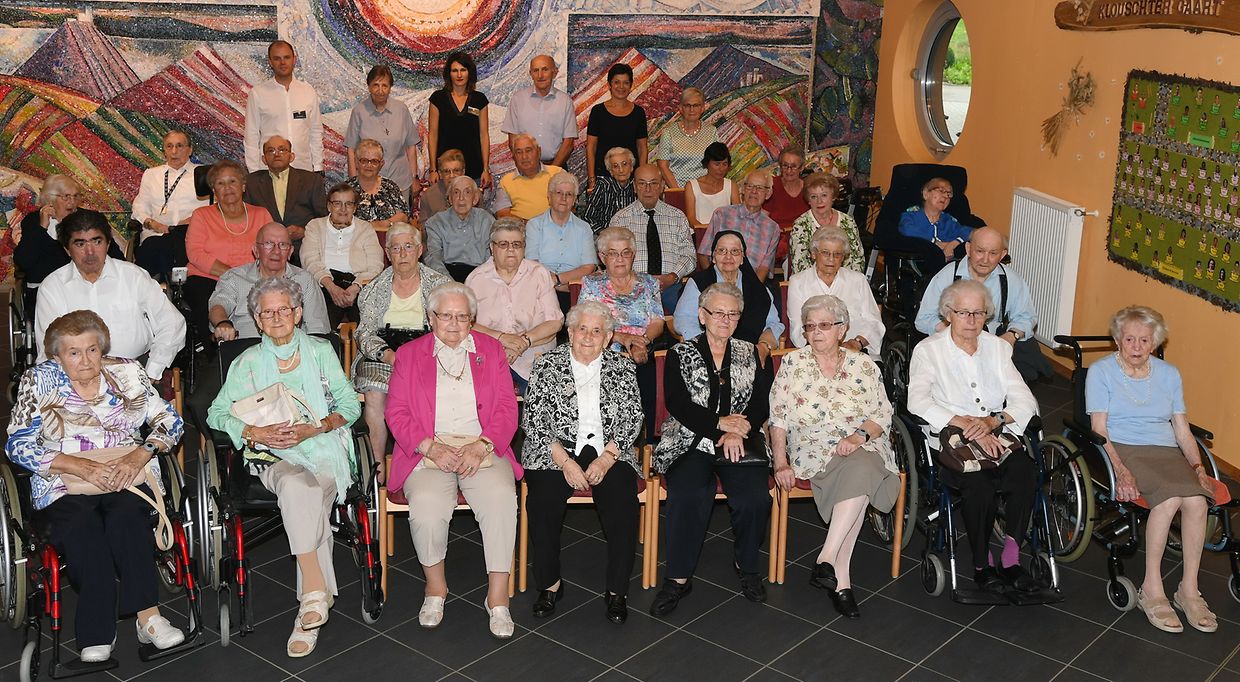 Mersch: Ein mit bunten Luftballons geschmückter Saal im „Home pour personnes agées“ in Mersch, erhob die gute Geburtstagsstimmung, bei der alle 35 Jubilare die in der Zeit vom 28. April bis 27. Juli ihr Wiegenfest anlässlich der Geburtstagsfeier, Ende Juli, feiern konnten. Die Glückwünsche der Gemeinden Fischbach, Lintgen und Mersch überbrachten Marianne Brosius- Kolber, Simone Majerus- Schmit, Georges Herr und Henri Krier. Im Namen der Direktion war es für Michèle Lentz, Nicky Wintringer und Schwester Paul Detampel, eine besondere Ehre die Geburtstagskinder mit Rosen zu ehren und allen eine gute Gesundheit und Zufriedenheit zu wünschen. Entertainer Ferdy zusammen mit dem Club „ R“ sorgten bei Sekt, Kaffee und Kuchen zusammen mit den Familienangehörigen für Animation und beste Stimmung den ganzen Nachmittag über. Besonderen Applaus galt Catherine Pick- Kaufmann die zu ihrem 100. Geburtstag herzlich gratuliert wurde. Geehrt wurden: Evaristo Pereira (66 Jahre), Liliane Fellens- Serres (71), Jeanine Streff- Paul (72), Valérie Hoss- Jung und Monique Krippel- Schammel (75), Fernand Weber und Sr. Béatrice Houscht (78), Josée Schmit- Lecomte (79), Raymond Goelff (80), Irène Legay und Sr. Bertha Feiereisen (81), Sr. Adelaide Reiners, Josette Hausemer- Steichen und Joseph Wahl (82), Camille Kasel und Charles Molitor (83), Josephine Van der Weken- Nols und Philippe Heck (85), Julie Kettel- Maurer (86), Léonie Victor- Geisen und Joséphine Lehnerts- Carl (87), Catherine Schanen- Schmit und Jos Fidler (88), Jean- Pierre Mathieu, Christa Gouber- Wenner, Marguerite Schmit- Decker und Léonie Miny- Heck (89), Adolphe Hames und Marie- Jeanne Hengen- Jacoby (91), Léontine Konsbruck- Aust und Suzanne Molitor (92), Catherine Thill- Backes und Marguerite Colling- Molling (93) sowie Catherine Hengen- Chennaux (94). (TEXT/FOTOS: CHARLES REISER)