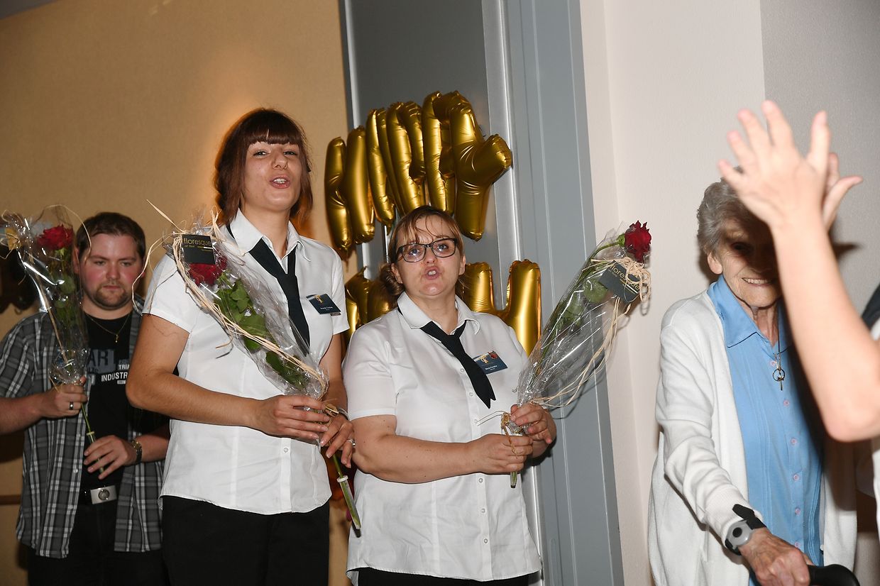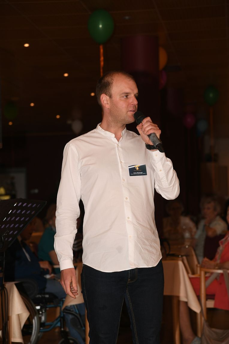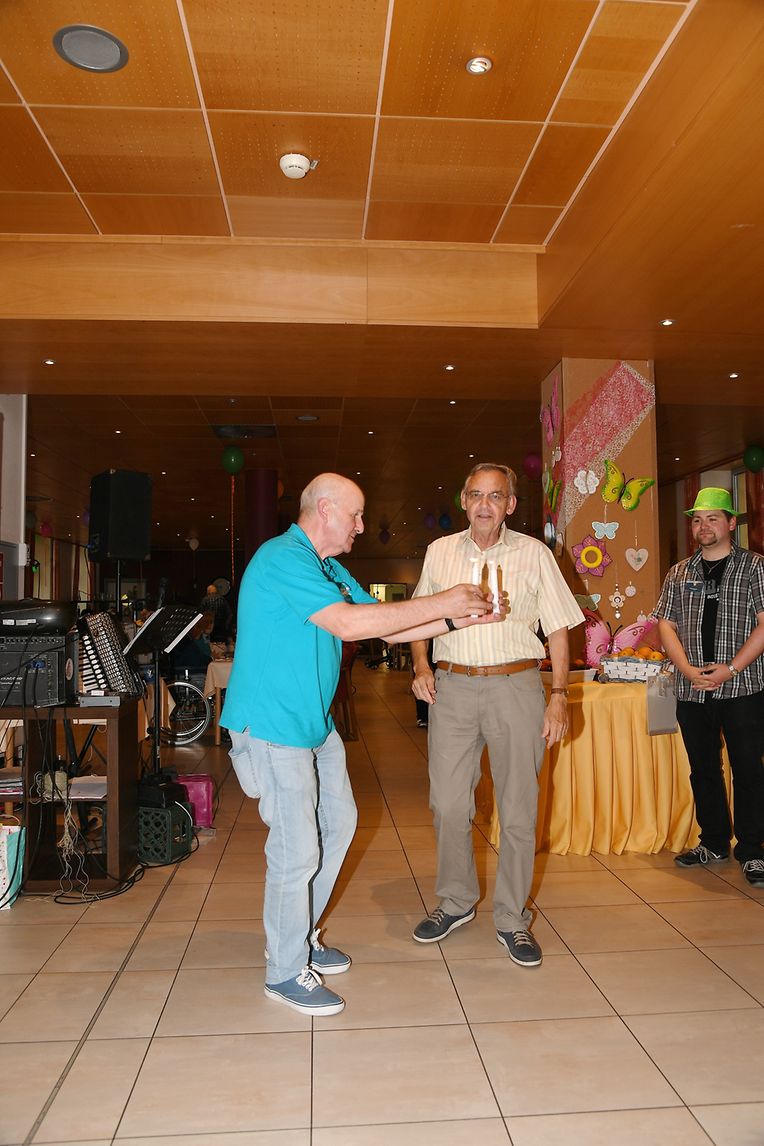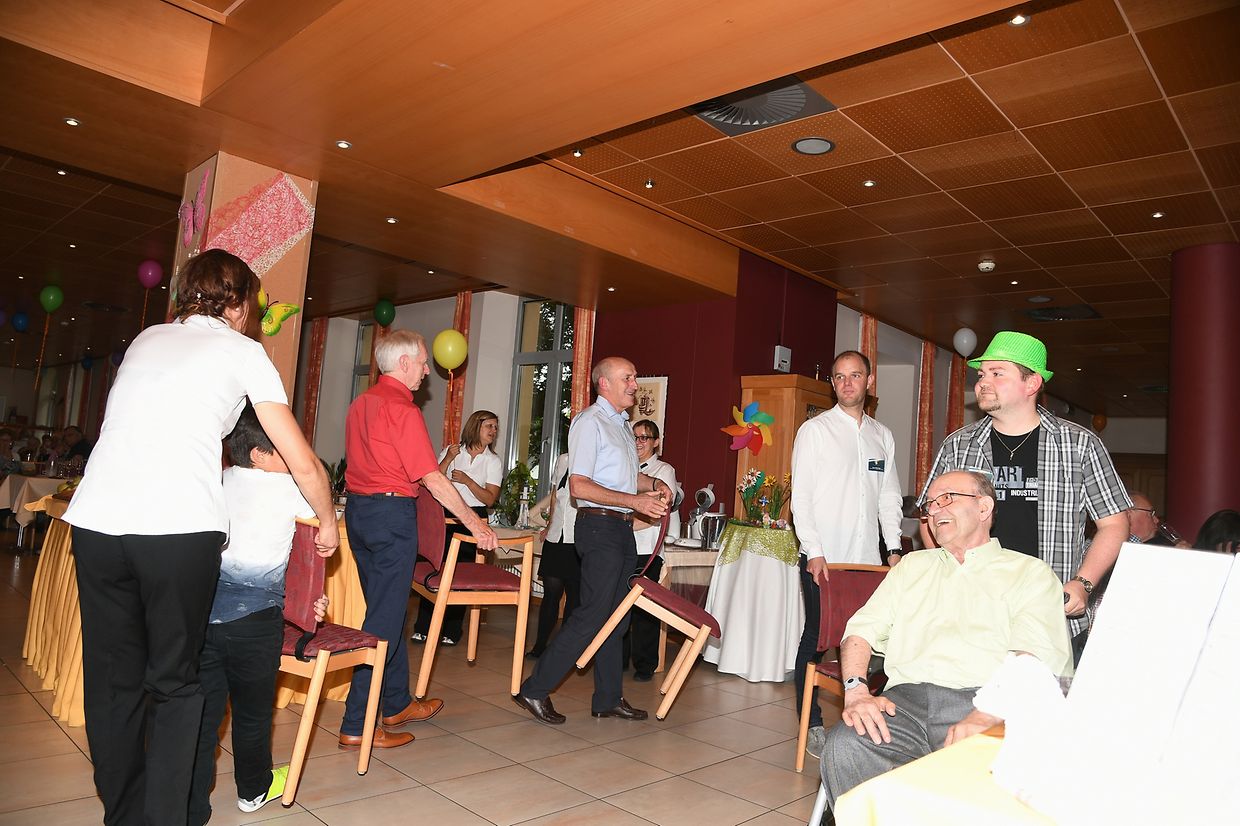 Mersch: Ein mit bunten Luftballons geschmückter Saal im „Home pour personnes agées“ in Mersch, erhob die gute Geburtstagsstimmung, bei der alle 35 Jubilare die in der Zeit vom 28. April bis 27. Juli ihr Wiegenfest anlässlich der Geburtstagsfeier, Ende Juli, feiern konnten. Die Glückwünsche der Gemeinden Fischbach, Lintgen und Mersch überbrachten Marianne Brosius- Kolber, Simone Majerus- Schmit, Georges Herr und Henri Krier. Im Namen der Direktion war es für Michèle Lentz, Nicky Wintringer und Schwester Paul Detampel, eine besondere Ehre die Geburtstagskinder mit Rosen zu ehren und allen eine gute Gesundheit und Zufriedenheit zu wünschen. Entertainer Ferdy zusammen mit dem Club „ R“ sorgten bei Sekt, Kaffee und Kuchen zusammen mit den Familienangehörigen für Animation und beste Stimmung den ganzen Nachmittag über. Besonderen Applaus galt Catherine Pick- Kaufmann die zu ihrem 100. Geburtstag herzlich gratuliert wurde. Geehrt wurden: Evaristo Pereira (66 Jahre), Liliane Fellens- Serres (71), Jeanine Streff- Paul (72), Valérie Hoss- Jung und Monique Krippel- Schammel (75), Fernand Weber und Sr. Béatrice Houscht (78), Josée Schmit- Lecomte (79), Raymond Goelff (80), Irène Legay und Sr. Bertha Feiereisen (81), Sr. Adelaide Reiners, Josette Hausemer- Steichen und Joseph Wahl (82), Camille Kasel und Charles Molitor (83), Josephine Van der Weken- Nols und Philippe Heck (85), Julie Kettel- Maurer (86), Léonie Victor- Geisen und Joséphine Lehnerts- Carl (87), Catherine Schanen- Schmit und Jos Fidler (88), Jean- Pierre Mathieu, Christa Gouber- Wenner, Marguerite Schmit- Decker und Léonie Miny- Heck (89), Adolphe Hames und Marie- Jeanne Hengen- Jacoby (91), Léontine Konsbruck- Aust und Suzanne Molitor (92), Catherine Thill- Backes und Marguerite Colling- Molling (93) sowie Catherine Hengen- Chennaux (94). (TEXT/FOTOS: CHARLES REISER)