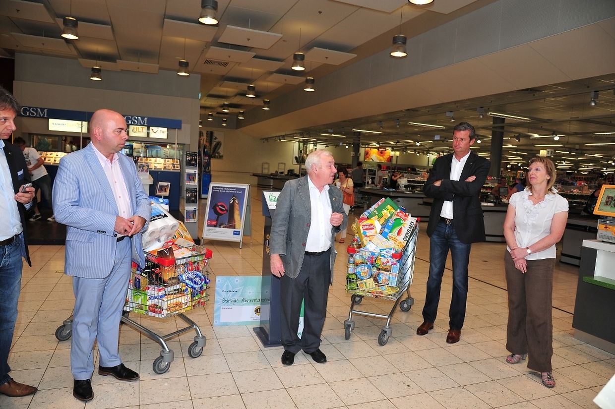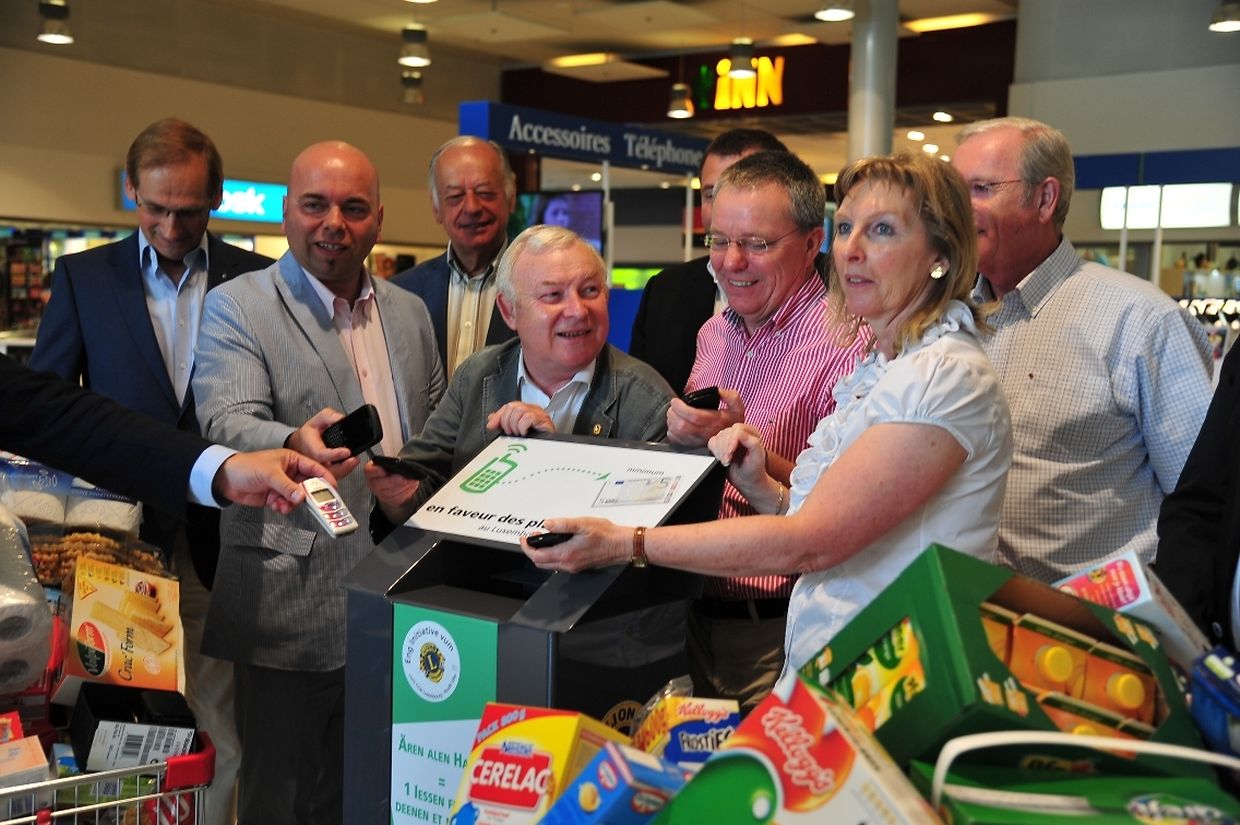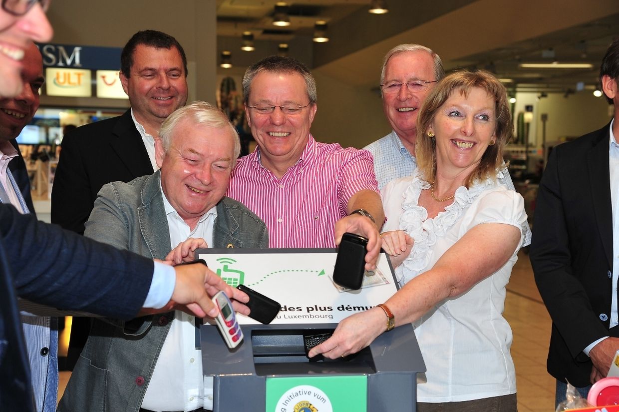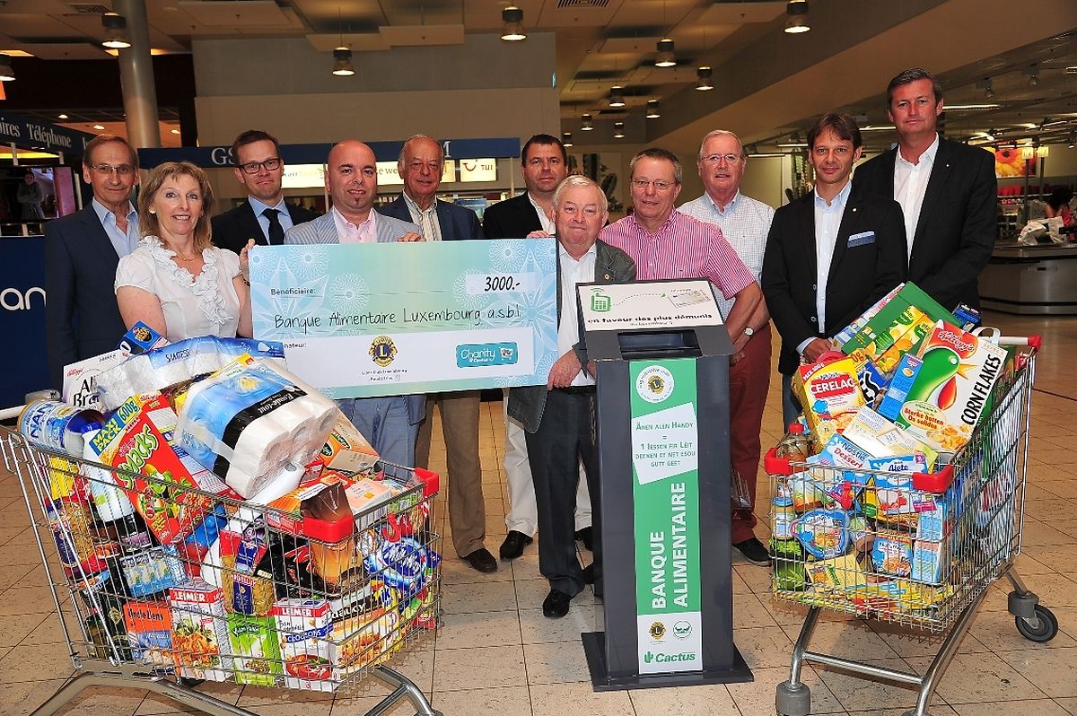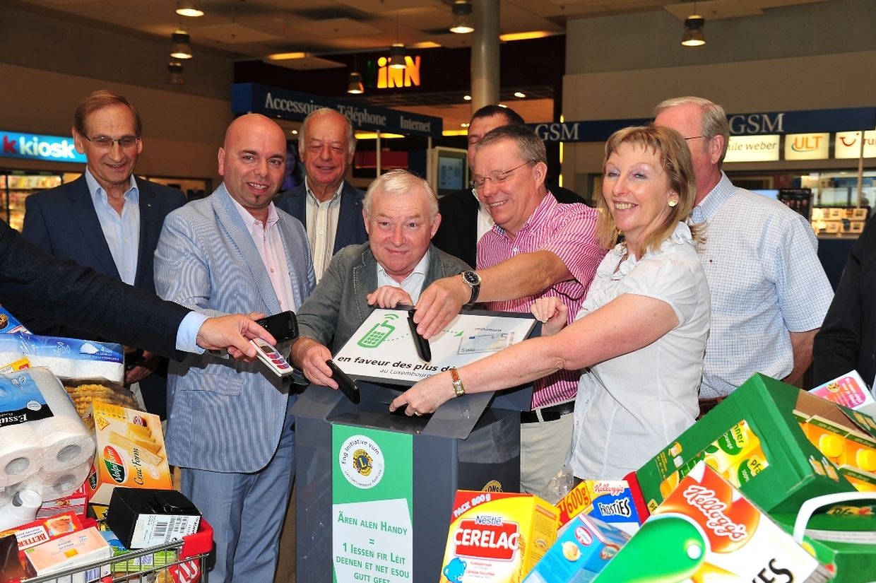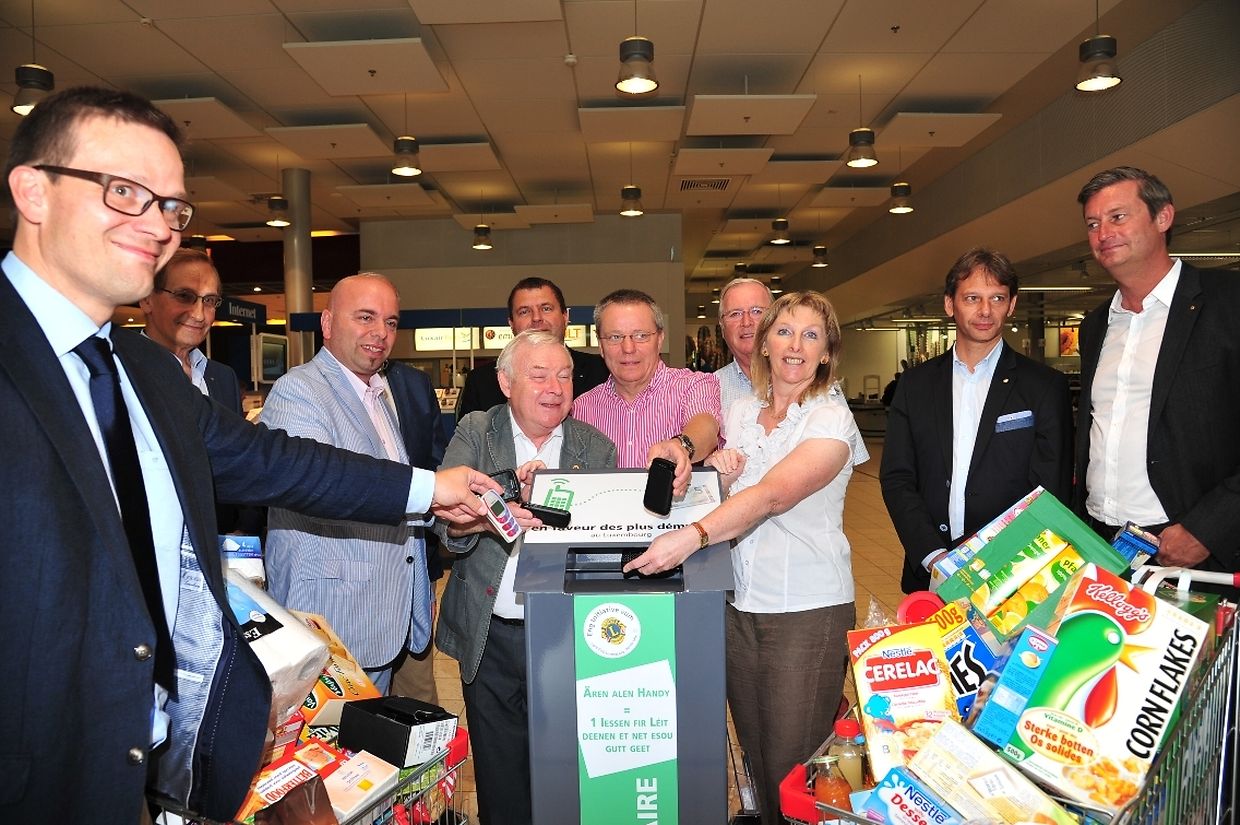 Unter dem Motto: „Ären alen Handy ass 1 Iessen fir Léit deenen et nit esou gutt geet“ startete der Lions Club Luxembourg „ Roude Léiw“ im Juni 2012 gemeinsam mit der Cactus Gruppe ein neues Projekt um alte und gebrauchte Handys zu sammeln und mit dem Erlös die „ Banque alimentaire“ zu unterstützen. Für jedes der 600 Handy‘s die in den jeweiligen aufgestellten Urnen der zwölf Cactus- Supermärkten in einer Zeit von 12 Monaten eingesammelt wurden, konnten insgesamt 3 000 Euro vom Recycling erwirtschaftet werden. Anlässlich der Scheckübergabe die neulich im Cactus Mersch stattfand, ging Karin Pütz als Verantwortliche der Cactus Public Relations Abteilung und in Gegenwart von Marketing Direktor Marc Hoffmann und Jill Colas auf die flotte Initiative ein, die vom Lions Club mit der Cactus Gruppe zugunsten der „Banque alimentaire“ ins Leben gerufen wurde. Seitens des Lions Club „ Roude Léiw“ bedankte sich Guy Legener als Vorsitzender der Aktion GSM für die gute Zusammenarbeit und die Bereitwilligkeit der Cactus Gruppe für das Aufstellen der Urnen um auf diese Weise dieses erfolgreiche Projekt zu organisieren und auch durchzuziehen. So konnten Andrew Ewans und Marc Olinger seitens der „ Banque alimentaire“ einen Scheck über 3 000 Euro in Empfang nehmen. Diese Organisation hilft das gesamte Jahr hindurch bedürftigen Familien in Luxemburg mit Lebensmittelpakten. Eines unserer Hauptziele ist es, den Armenzyklus aufzubrechen. Desweiteren arbeiten wir eng mit Sozialarbeitern zusammen, um bedürftige Haushalte zu identifizieren und sicherzustellen, dass die Lebensmittelpakete auch wirklich bei den notdürftigen Familien ankommen. Wir freuen uns sehr, dass Dank des Entgegenkommens des Lions Club Luxembourg“ „Roude Léiw“ und der Cactus- Gruppe wir mit dieser bedeutenden Spende auch ganz gezielt helfen können, so Ewans abschließend. (CR)(FOTOS: CHARLES REISER)