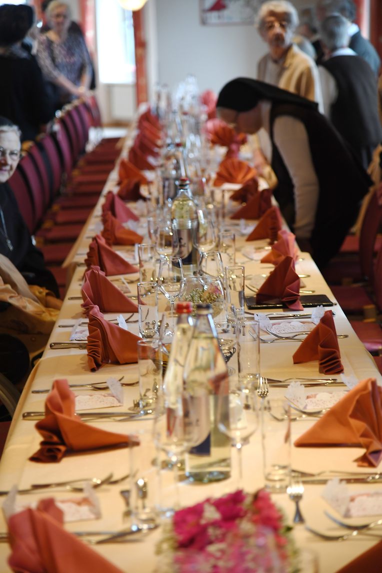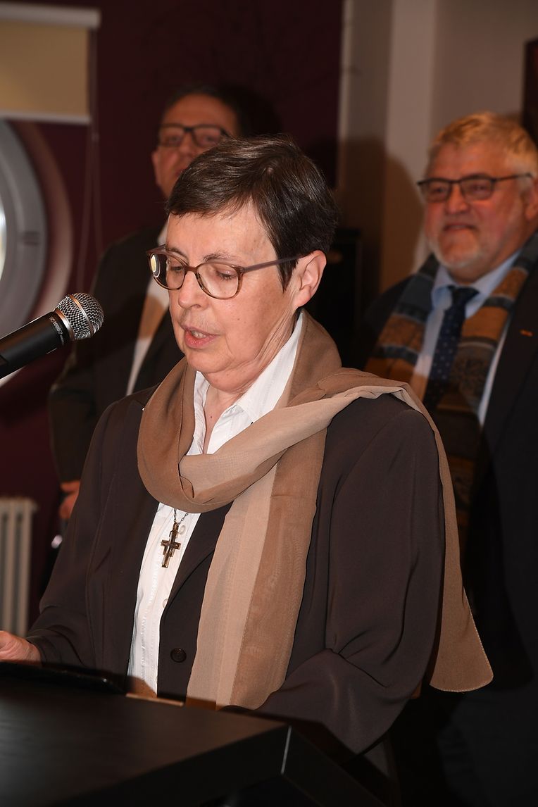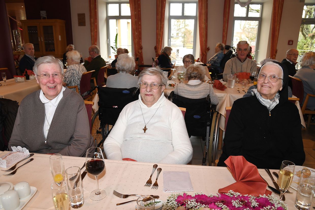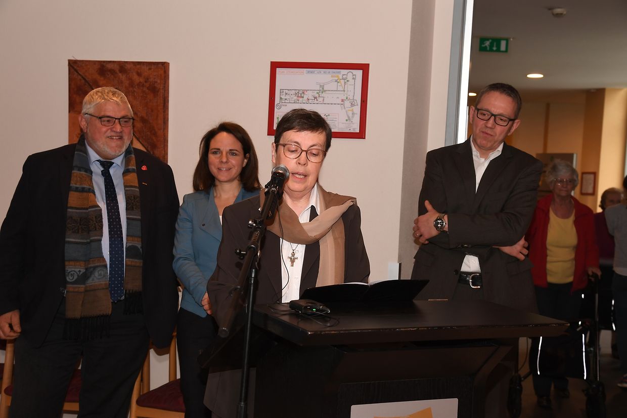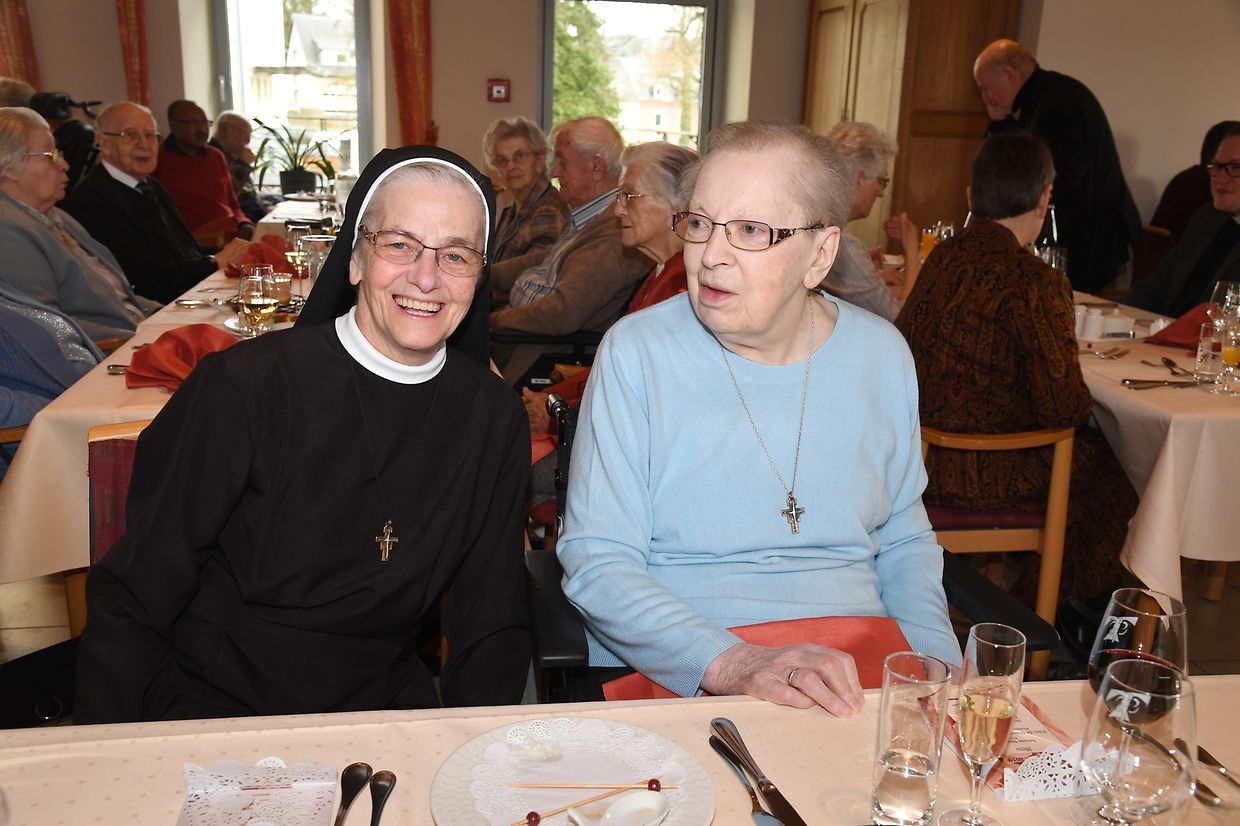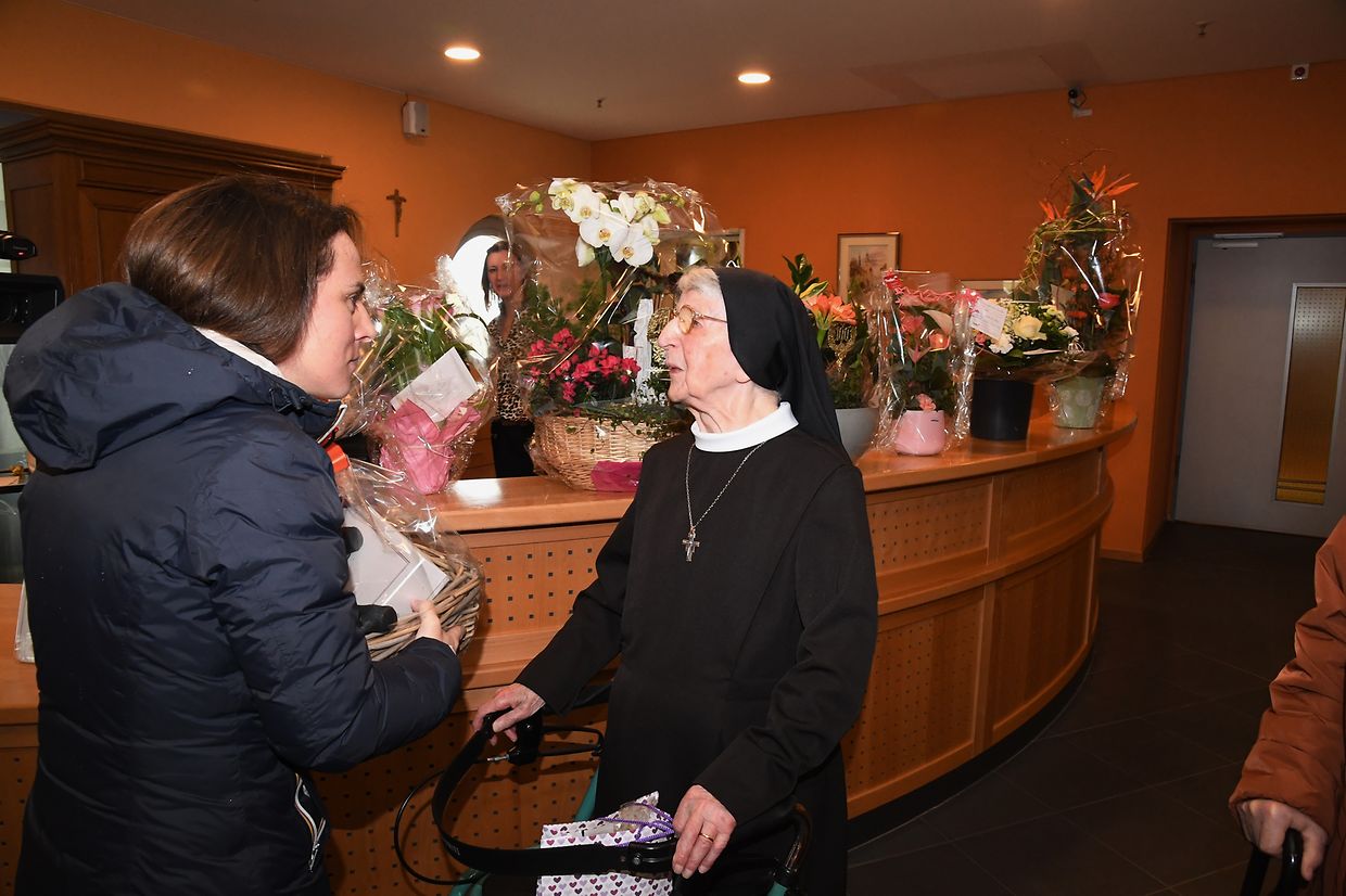 Mersch: Bei guter Gesundheit war es Sr. Marie Saint- Pierre Post, die seit dem 22. Juli 2002 ihren Lebensabend im „Home pour personnes agées St. Joseph“ in Mersch verbringt, gegönnt ihren 100. Geburtstag im Beisein der Familie, und vielen Ehrengästen, zu feiern. Für Home- Direktor René Wirth war es eine besondere Ehre der Jubilarin als Erster, die aller besten Glückwünsche im Namen des gesamten Pflegepersonals zu überbringen. In ihrer Laudation ging Dorothe Lause, Generloberin der Kongregation der Franziskannerinnen auf das bewegte Leben von Schwester Aloysia Post ein, die am 7. Februar 1919 als jüngste von vier Töchtern Des Ehepaares Elise Plier und Mathias Post in Reckingen/ Mersch das Licht der Welt erblickte. 1938 trat sie dem Orden der Franziskanerinnen bei, hat 1941 ihr zeitlicher Profess und 1947 ihr ewiger Profess abgelegt. Die ersten Jahre hat sie nach dem Kloster in Moresnet (B) geführt, um in die Sakristei des Mutterhauses zurückzukehren. Später ging es dann nach Huy, Antheit und Bealen und danach zu den Kindern nach Bettendorf und Saint- Antoine bis Schwester Marie Saint- Pierre in Clerf sesshaft wurde und dort von 1959 bis 2002 fast die ganze Zeit dort im Büro arbeitete. Sie war immens lieb, höflich, freundlich, zuvorkommend ganz exakt und aufmerksam und hat sich stets ausgezeichnet durch ihre treue Liebe zu den Mönchen und dies im Dienst zu Gott und den Menschen. General- Oberin Dorothe – Maria Lause wünschte dem Geburtstagskind nach viele schöne Lebensjahre dazu und dass der Herrgott sie heute segnen und behüten soll und dies auch noch jeden Tag in ihrem weiteren Leben. Zum 100. Geburtstag überbrachte nun auch Familienministerin Corinne Cahen dem Geburtstagskind die allerbesten Glückwünsche des großherzoglichen Paares und der Regierung. Neben der Überreichung von Blumen und Geschenken zeichnete die Ministerin Sr. Aloysia Post aber auch mit dem „Ordre de mérite „aus. Auch Bürgermeister Michel Malherbe in Gegenwart von Rätin Christiane Haubrich- Schandeler überbrachten die Glückwünsche seitens der Gemeindeverwaltung Mersch. Ein weiterer Höhepunkt dieser Feier war das Anschneiden des großen Geburtstagskuchens denen sich alle Gäste nach dem gemeinsamen Festessen mit einem dreifachen „Happy Birthday“ auch gut munden ließen. (CR)(FOTOS: CHARLES REISER)