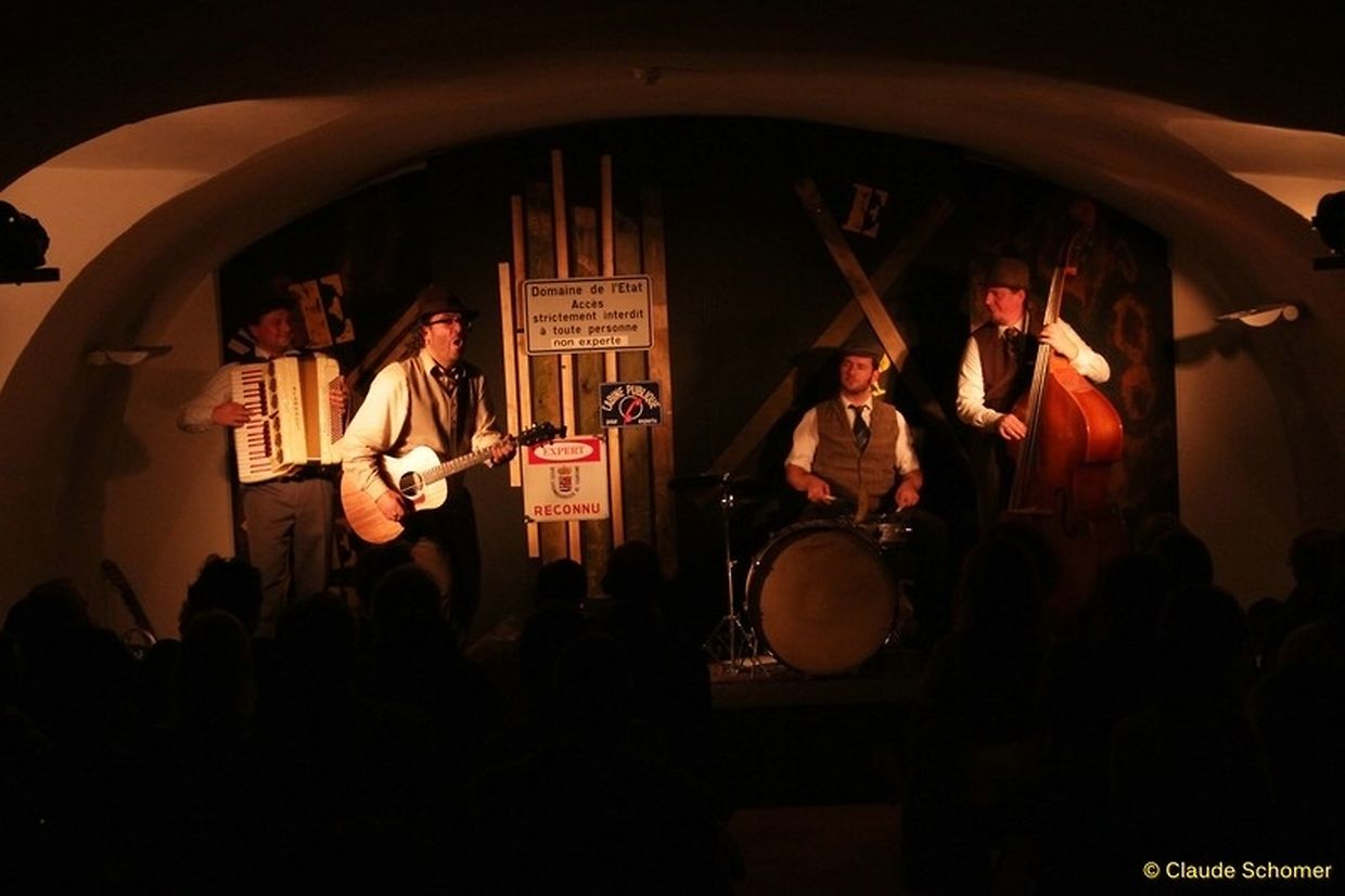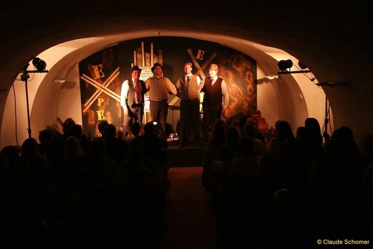 Alte Kellergewölbe vermitteln oft etwas Beklemmendes, Bedrohliches. Sie lassen erschaudern, beim geringsten Geräusch zusammenzucken, während das Auge verzweifelt im Halbdunkel etwas zu erkennen sucht, und man seinem Begleiter höchstens hastig im heiseren Flüsterton ein paar Worte zuwirft. Anders jedoch am letzten Freitag (19.10) im Literaturkeller des Nationalen Literaturzentrums in Mersch. Hier herrschten ausgelassene Stimmung und vergnügliches Gelächter vor, denn an eben diesen Ort hatte es niemand Geringeren als Serge Tonnar und Legotrip auf ihrer „Bopebistro“-Tour verschlagen.