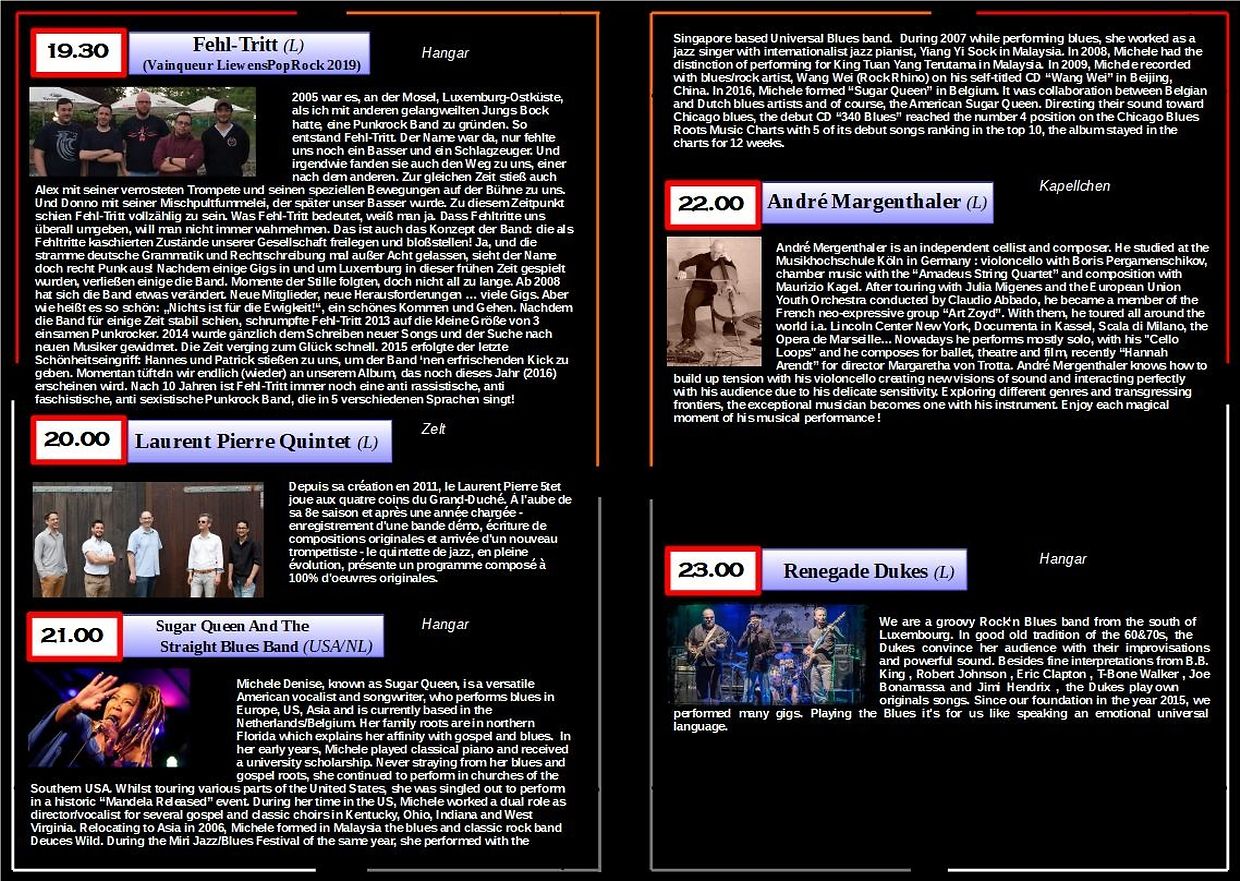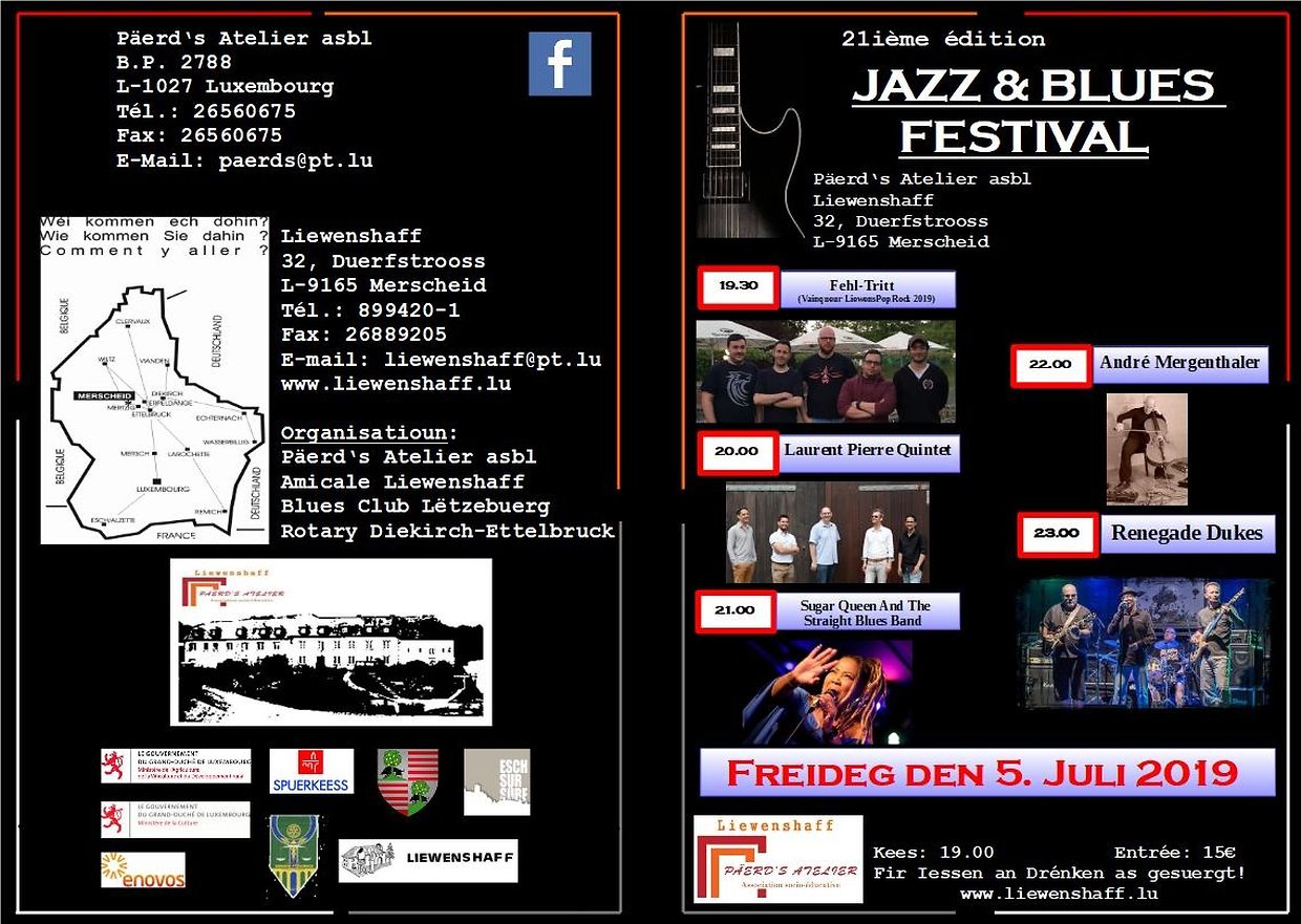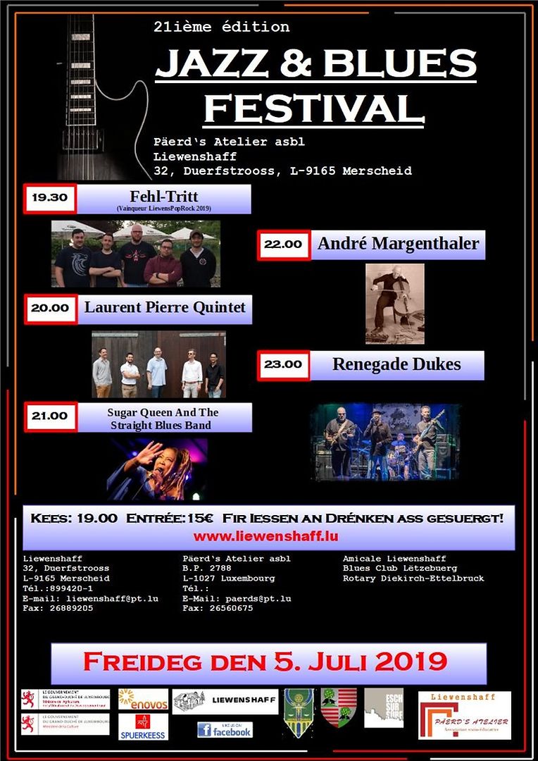 D’Personal an seng Jugendlëcher sin frou, Iech Freideg, den 5ten Juli 2019 um 19:00 op hiiert Jazz & Blues Festival 2019 anzelueden.