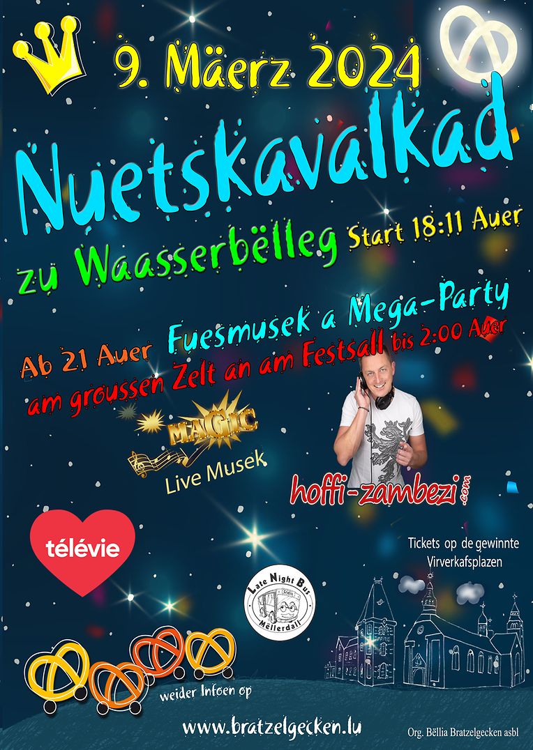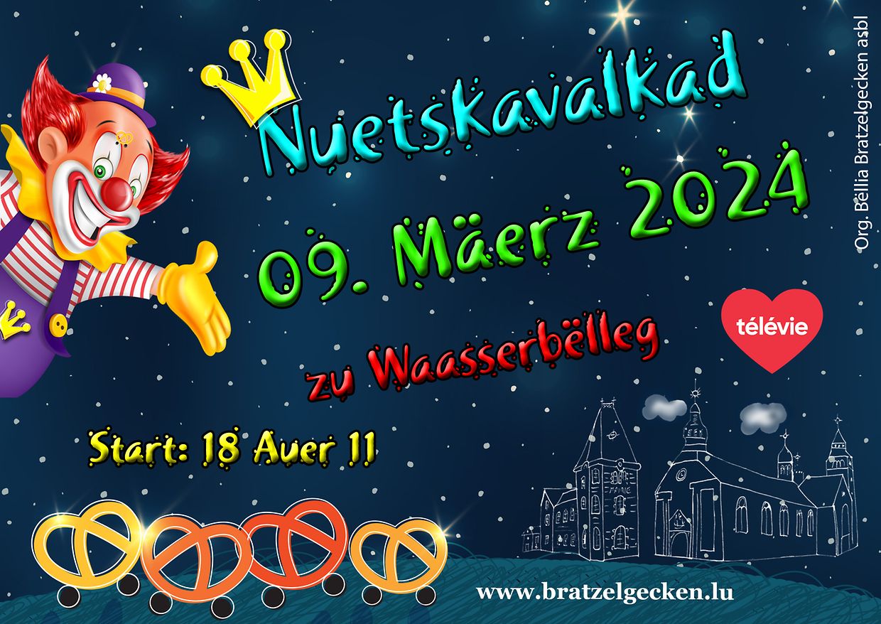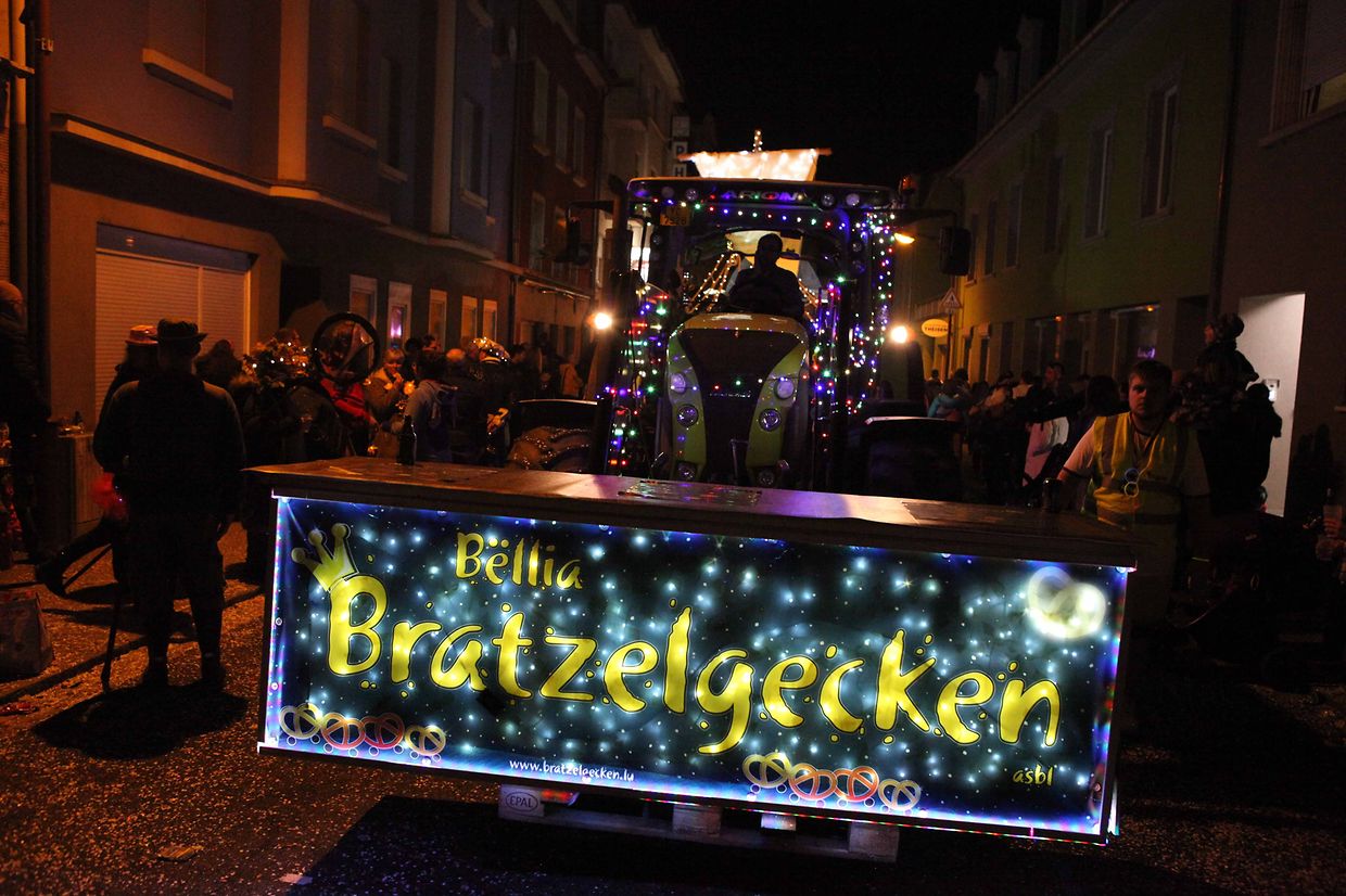 Grouss Nuetskavalkad mat 50 verschiddene Fuesgruppen, vu faarwefroue Fouss- a Museksgruppe bis hin zu konschtvoll beliichte Festwéen an Trakteren.