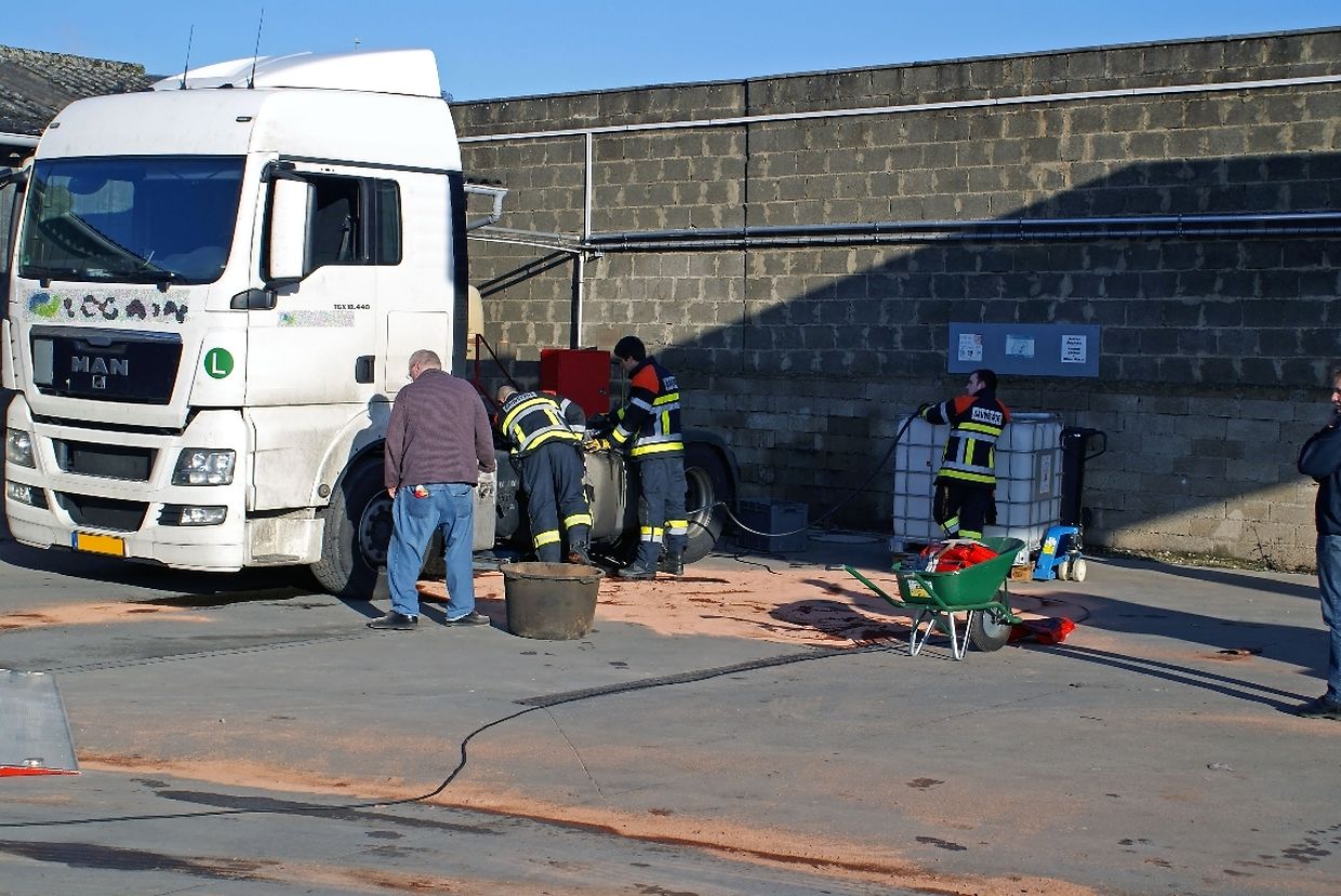 Der Fahrer einer Sattelzugmaschine hatte an der Zapfsäule seine Tanks mit Dieseltreibstoff gefüllt, als er plötzlich merkte, dass sich aus einem der beiden Tanks Diesel ergoss. Eine nähere Kontrolle ergab, dass der Tank beschädigt war und die Rettungskräfte wurden vor Ort entsandt. Nachdem der beschädigte Tank abgeriegelt wurde und der ausgelaufene Treibstoff mittels eines speziellen Ölbindemittels aufgefangen werden konnten mussten die Rettungskräfte rund 200 Liter Dieseltreibstoff aus dem Tank umpumpen. Der Lastwagen konnte jedoch die Weiterfahrt bis zur nächsten Werkstatt selbst antreten. Der Schaden für die Umwelt konnte durch den schnellen Einsatz minim gehalten werden, kein Treibstoff gelang in die Kanalisation.