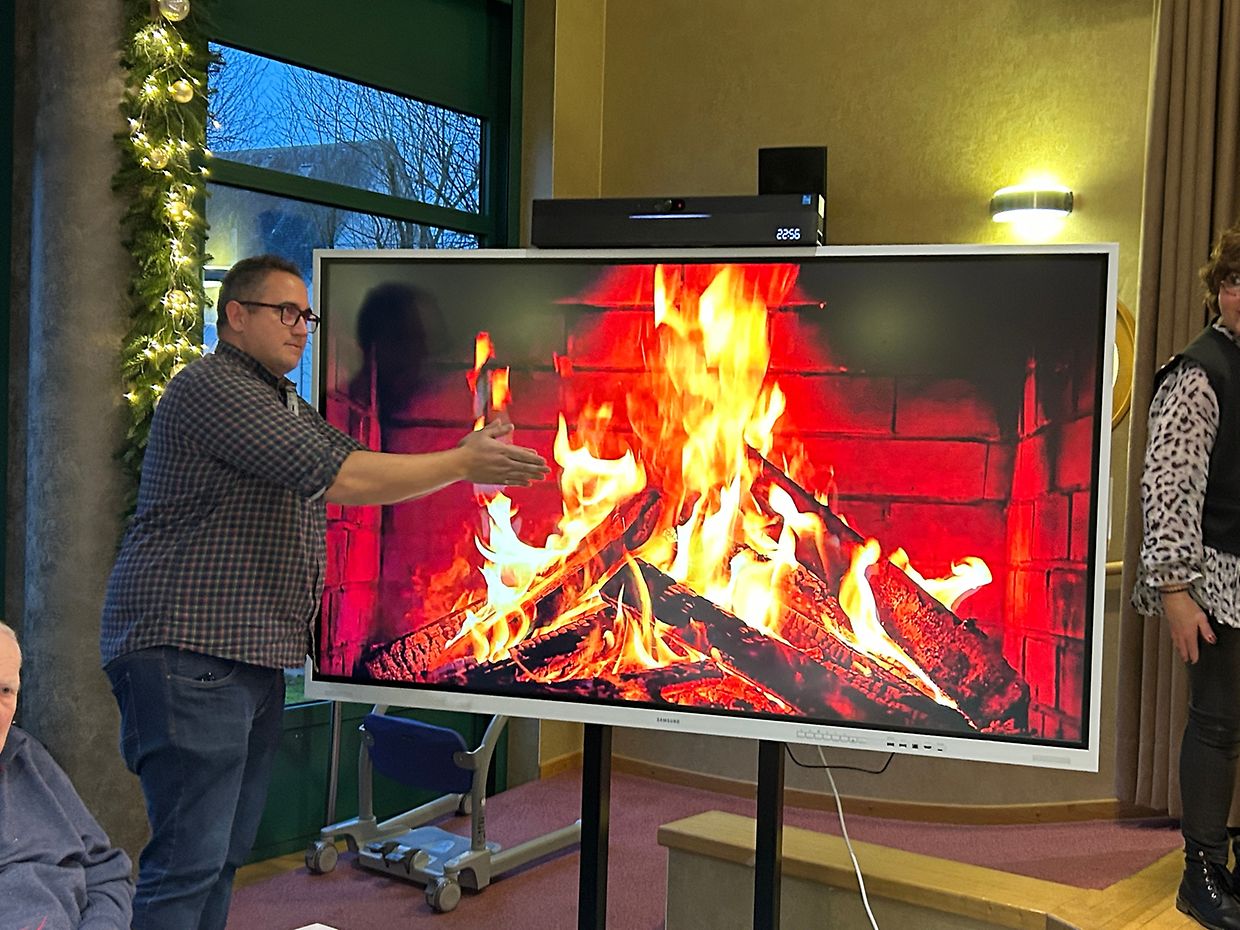 E ganz spezielle Moment vun der Feier war d’Iwwergab vum generéise Kaddo vun der Amicale un d’Bewunner: e 86 Zoll grousse Multifuntionsécran. Domatter ass et vun elo u méiglech, gemitterlech Filmowender ze maachen, gemeinsam Kinosnoméetteger oder Presentatiounen. Esou leescht d’Amicale e Beitrag, den d’Zesummeliewen am Haus nach weider verbessert.
