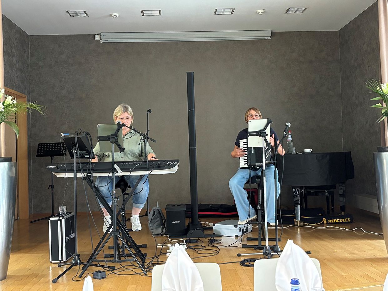 Für musikalische Stimmung sorgte das Duo „Blue Stars“, das mit bekannten Klassikern und mitreißenden Melodien sofort den richtigen Ton traf. Schon nach wenigen Liedern sangen viele Bewohner fröhlich mit, klatschten im Takt oder wiegten sich Arm in Arm zur Musik – ein Bild voller Lebensfreude!