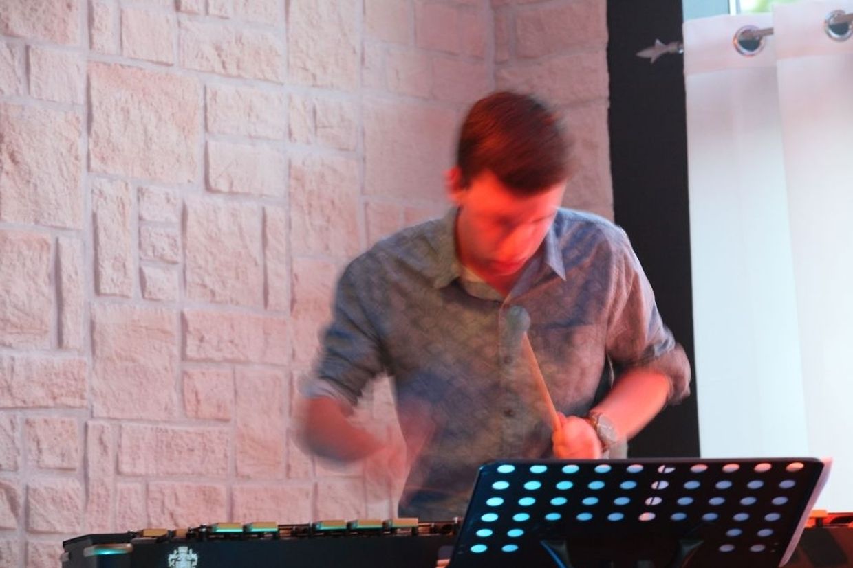 Mertzig "Electronics vs. Acoustics" an der Brasserie vum Soundcheck zu Mertzig e Mettwoch den 27.05.2015: Jang Gaspar 64 Bildergalerie Bitte scrollen Sie nach unten,um weitere Bilder zu sehen. Veröffentlicht am Donnerstag, 28. Mai 2015 um 22:29 E Mettwoch den 27.05.2015 gouf et an der Brasserie vum Soundcheck zu Mertzig e Jazzconcert vun "Electronics vs. Acoustics": David Hoffmann - Vibes, Simon Hoffmann - Keys, Olivier Biver - Electronics, Jan Mathias - Drums Et gouf 1 Zugab Unpassenden Inhalt angeben Weitere Neuigkeiten von Jang Gaspar > "George Letellier Trio" am Denzelt zu Iechternach e Sonnden den 31.05.2015: 31.05.15 Echternach "Musik Open 2015" e Samsden den 23.05.2015 am Trifolion zu Iechternach: 25.05.15 Echternach "Maceo Parker" als leschten Concert vum Festival "Like a Jazzmachine" zu Diddeleng e Sonnden den 17.05.2015: 18.05.15 Düdelingen 3. Dag vum Festival "Like a Jazzmachine" e Samsden den 16.05.2015 am Centre Culturel "opderschmelz": 17.05.15 Düdelingen 2. Dag vum Festival "Like a Jazzmachine" zu Diddeleng e Fréiden den 15.05.2015: 16.05.15 Düdelingen