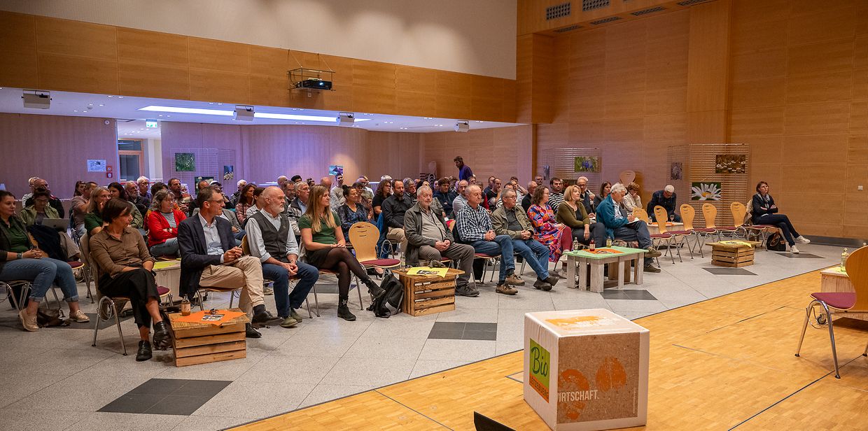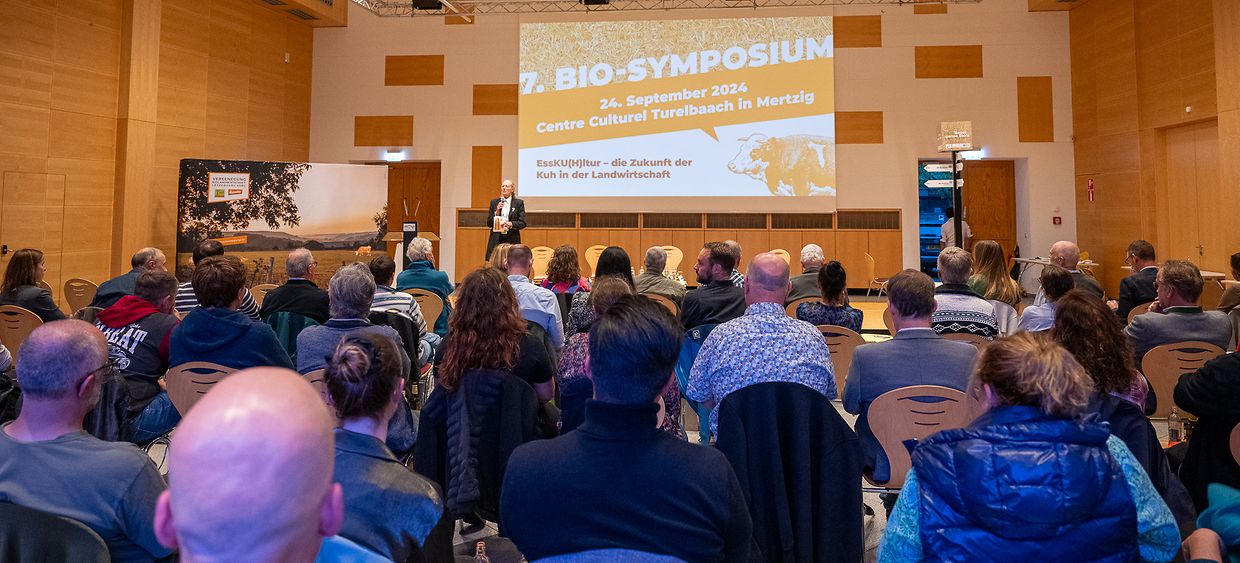 Im Rahmen der 2. BIO Woch „dem Bio-Bauer säi ganze Stolz“ organisierte die Vereenegung fir Biolandwirtschaft Lëtzebuerg a.s.b.l. das 7. Biosymposium als Abendveranstaltung. Vorab traf man sich in Mertzig zu einem kleinen Bio-Imbiss, um dann den Vorträgen zum Thema „EssKU(H)ltur- die Zukunft der Kuh in der Landwirtschaft“ frisch gestärkt folgen zu können.