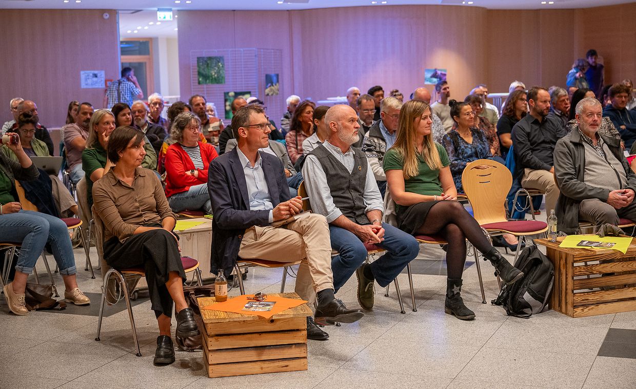 Mit diesem Vortrag lieferte Dr. Stéphanie Zimmer die Basis für die anschließende Podiumsdiskussion. Zur Einstimmung wurde der Film „Wéivill Kéi sinn nohalteg fir Lëtzebuerg“ (https://www.youtube.com/watch?v=7vFUeow_E2E) gezeigt, der im Rahmen des SIMBA-Projektes in Luxemburg entstanden ist. Hier wird deutlich gemacht, dass die flächengebundene Rinderhaltung sinnvoll ist, um nachhaltig unsere verfügbaren Ressourcen zu nutzen. Dazu passt die Reduktion der Lebensmittelverschwendung und die Senkung des Fleischkonsums. Eine eingängliche Zusammenfassung der abendlichen Vorträge. Zur Diskussion ergänzten Claudine Felten, die Direktorin von natur&ëmwelt a.s.b.l., sowie Jeff Boonen, Präsident der Agrarkommission, den Rednerkreis. Claudine Felten bedauerte, dass in den vorgestellten Szenarien die Biodiversität nicht mit in Betrachtung eingeflossen ist. Ausdrücklich wies sie nochmals darauf hin, dass es um die Biodiversität in Luxemburg nicht gut bestellt ist. Insbesondere die Offenlandhabitate sind massiv bedroht. Die rote Liste der bedrohten Vogelarten wurde neu erfasst und sie wird länger. Landwirtschaft ist ein Hauptakteur, der beeinflussen kann, ob der Biodiversitätsverlust aufgehalten werden kann. Sie appellierte, sich dieser Herausforderung aktiv zu stellen.